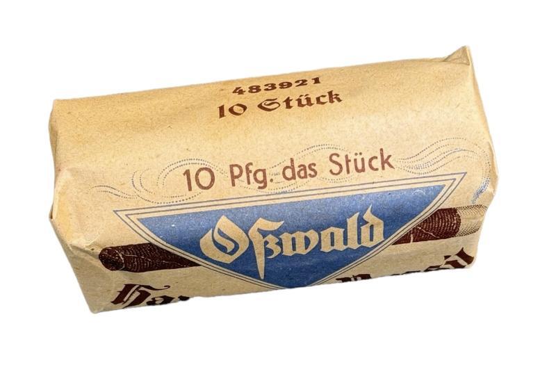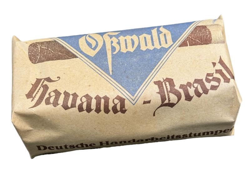 Wehrmacht era Cigars Nice original packaging with content 10 cigars. Wehrmacht era cigars by “Oswald Havana-Brasil” “Deutsche Handarbeidsstupen” Great for display!
