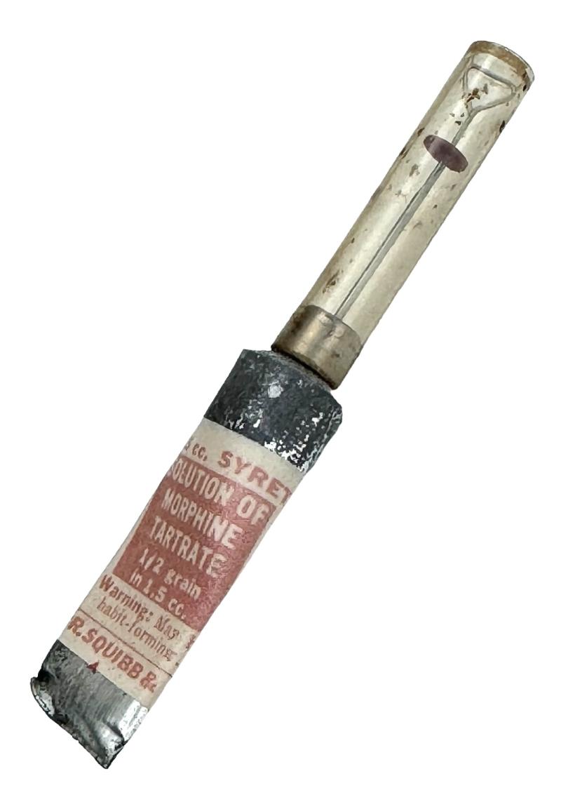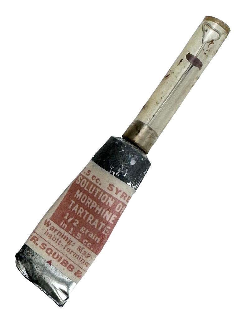 US WW2 Morphine Packaging Rare to find US WW2 military “Morphine” packaging (needle) used for the heavy combat wounded (Notice!!!! no content!) in used but very good condition. Rare to find! Great for display!