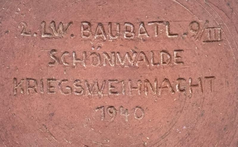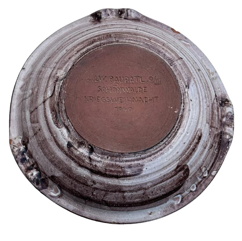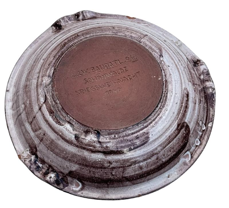 Luftwaffe Bau Battalion Chrismas Present Ashtray Very nice decorative porcelain ashtray. “2. LW. BauBatl. 9/III Schönwalde. Kriegsweihnacht 1940”. In very good condition!