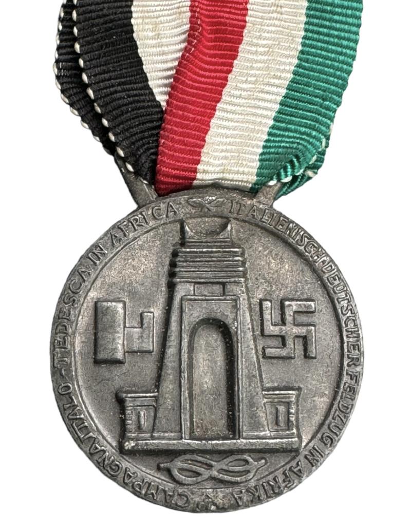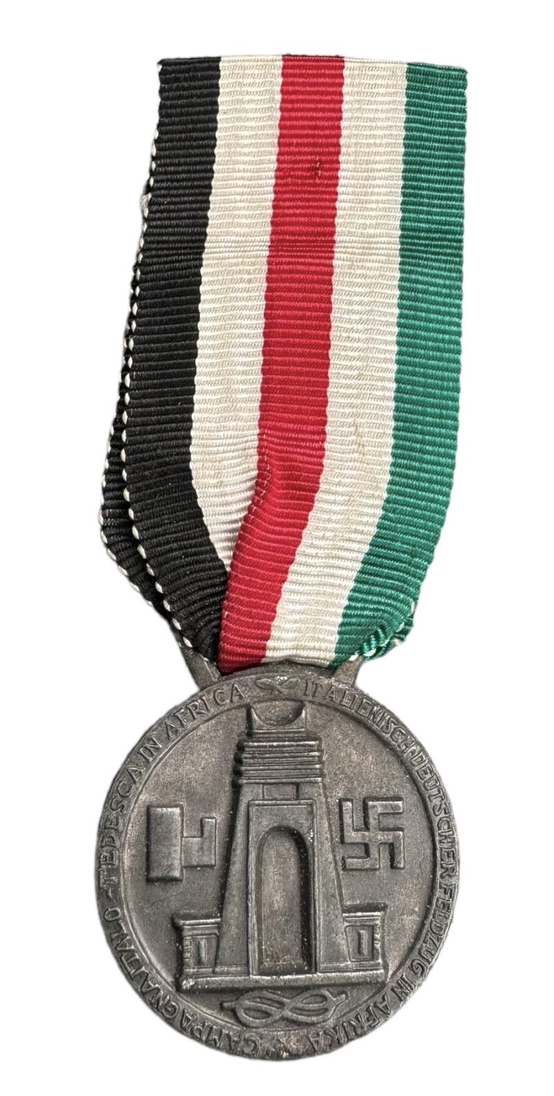 German-Italian WW2 Afrika Campain Medal Very nice “German-Italian” WW2 “Afrika” campain madel “Itallienisch-Deutschen Feldzug in Afrika” With its original ribbon. In very good condition.