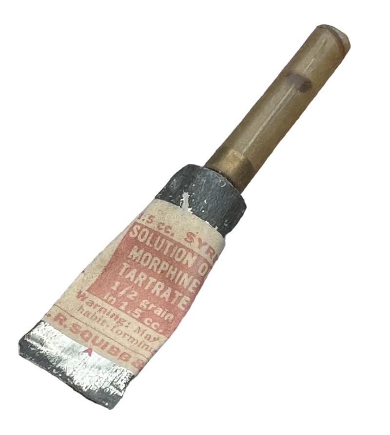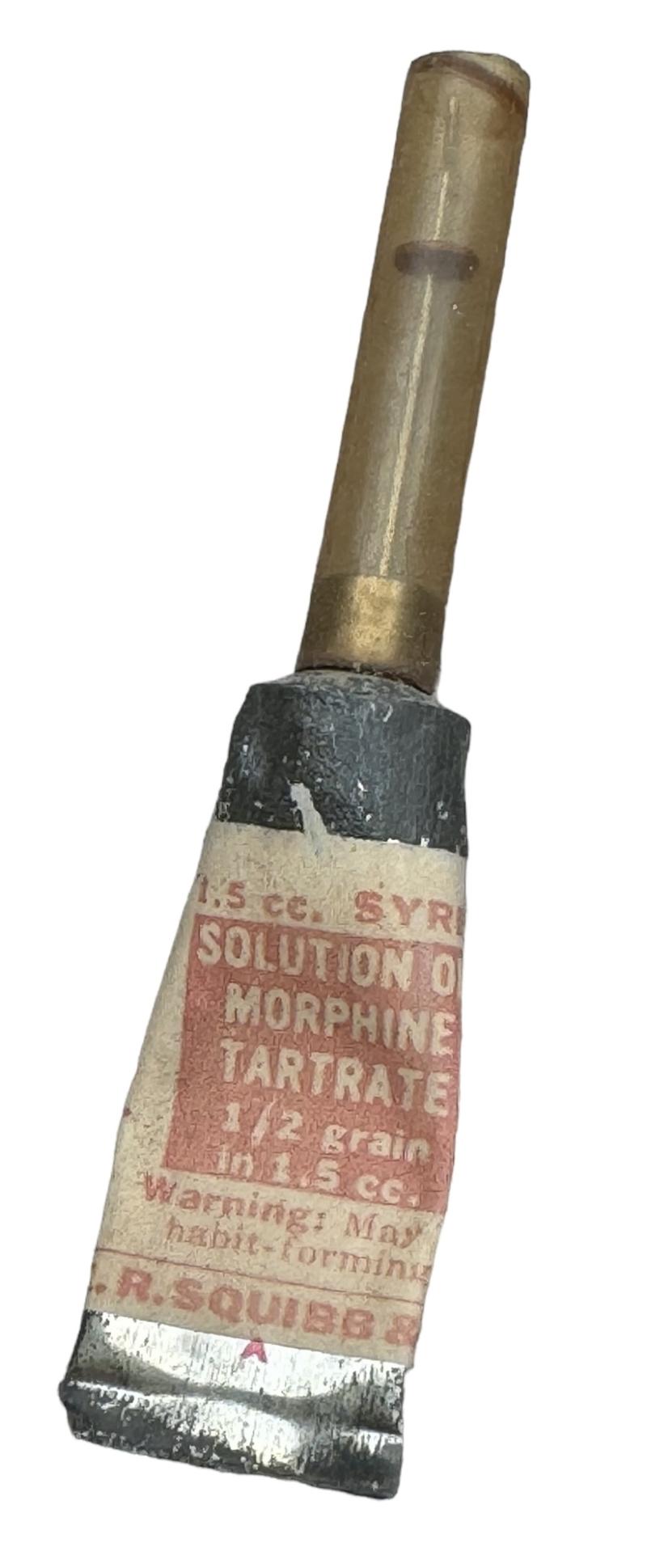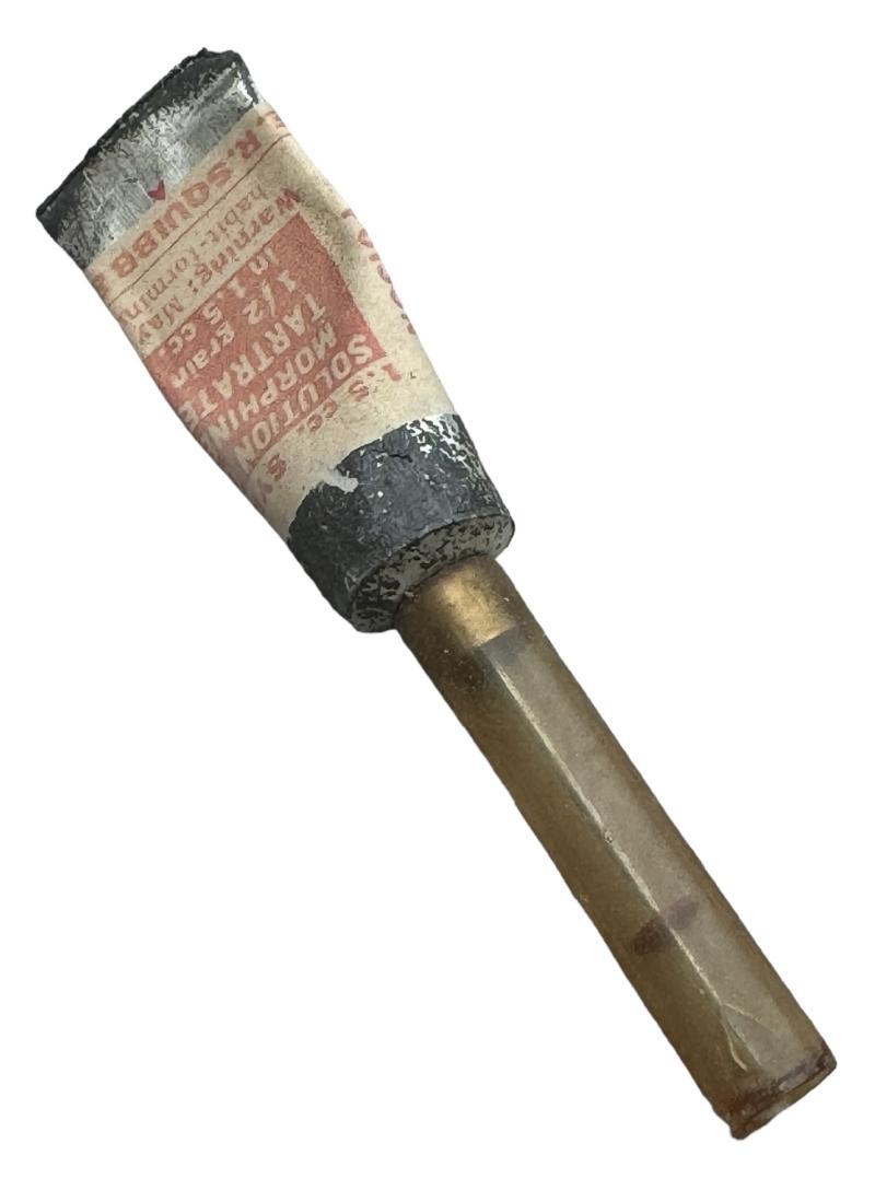 US WW2 Morphine Packaging Rare to find US WW2 military “Morphine” packaging (needle) used for the heavy combat wounded (Notice!!!! no content!) in used but very good condition. Rare to find! Great for display!