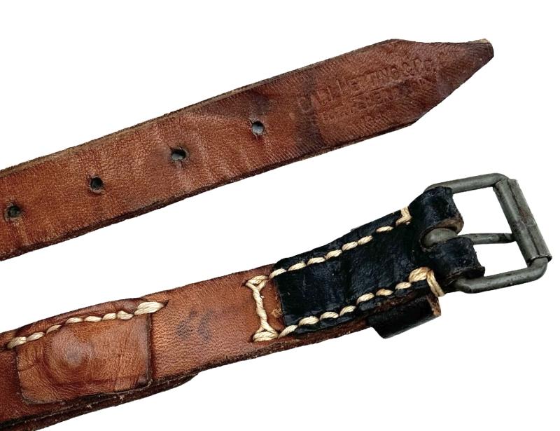 Wehrmacht Equipment Strap Used for Zeltbahn’s and other equipment. Maker marked “Carl Herting & Co.” and “1944” dated. Overal in used but in very good condition. Great to complete Wehrmacht equipment collection.