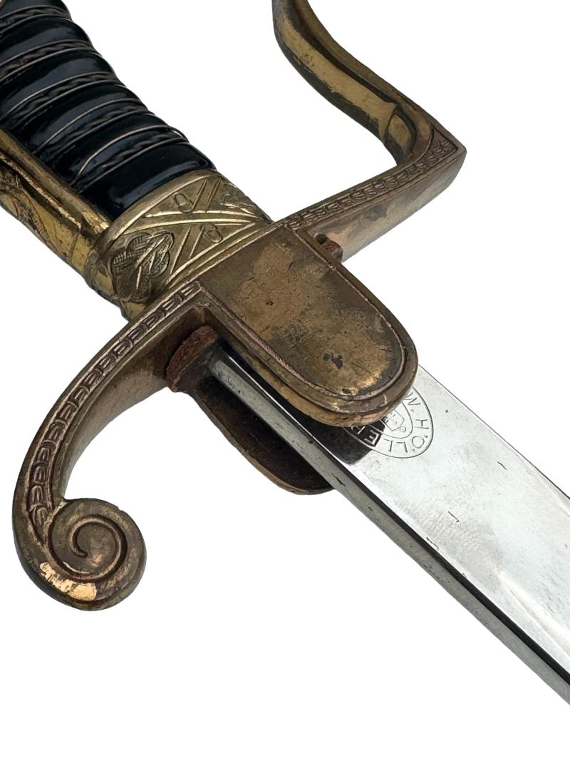 Made by “Höller, Solingen” with its original metal scabbard. Scabbard has 98% of its original black paint. Overal a fantastic used Wehrmacht sword in outstanding condition. With a fantastic blade!
