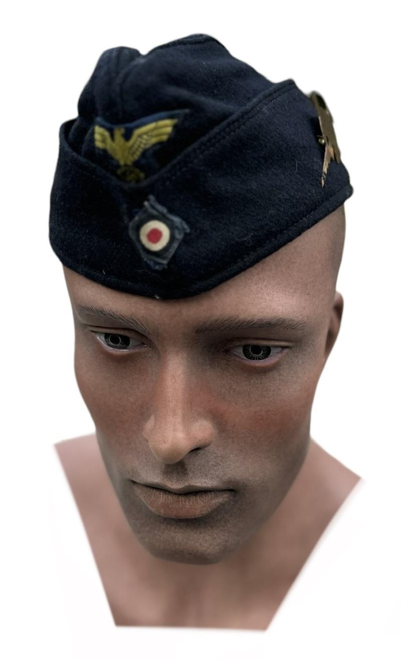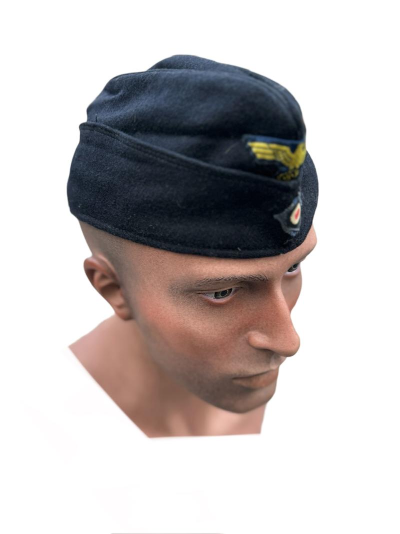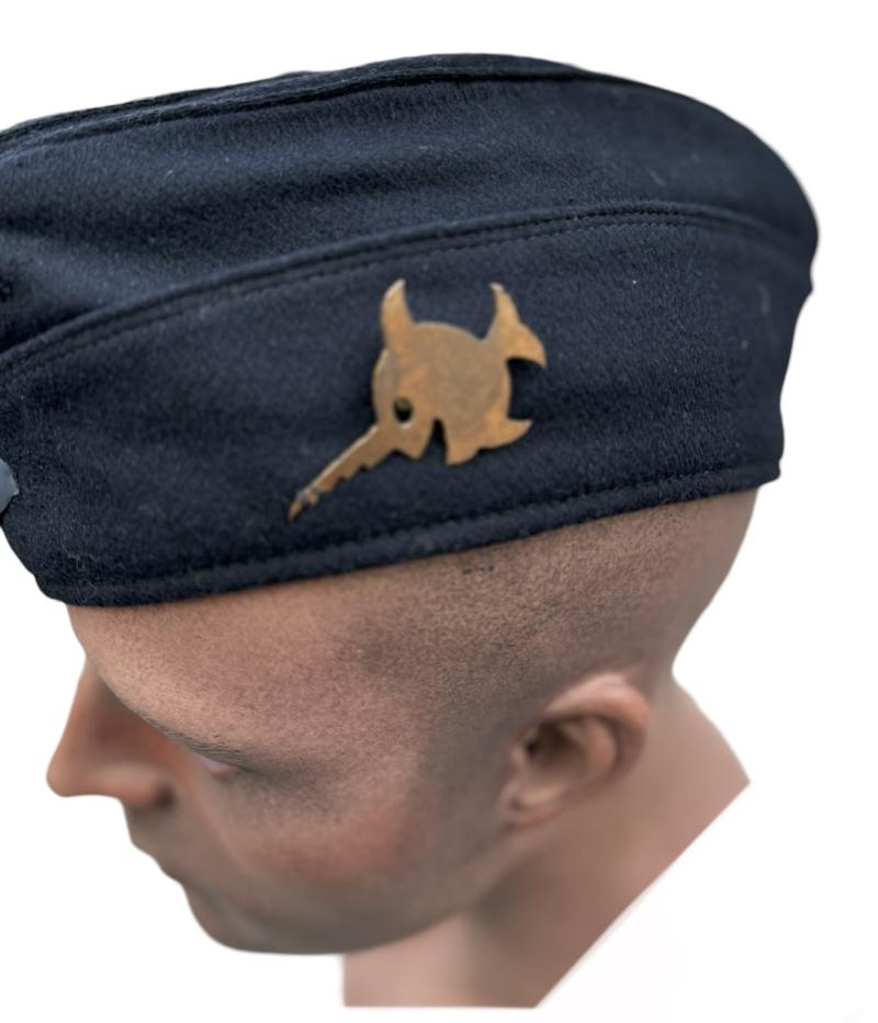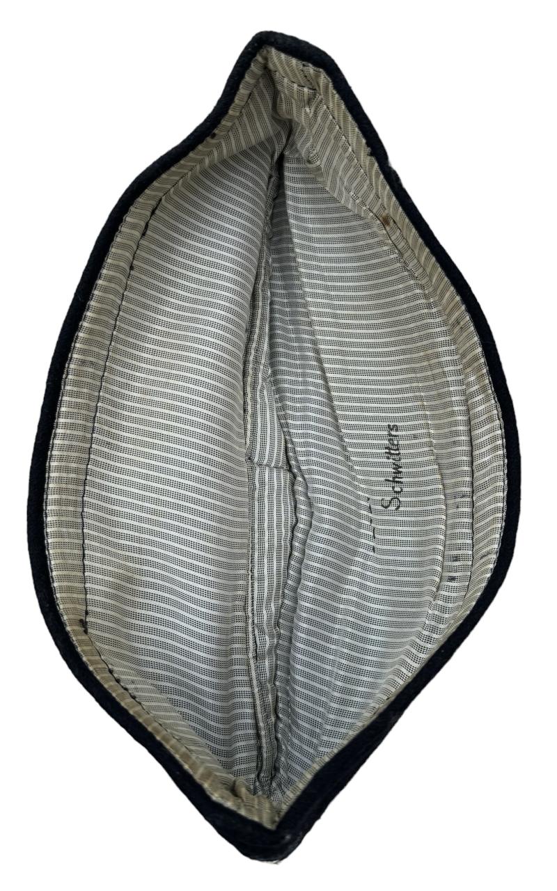 “Schwitters” the Kriegsmarine side cap has a good mannequin head size. Overal a very nice used and named, original Kriegsmarine side cap with a very nice replica cap badge in very good condition