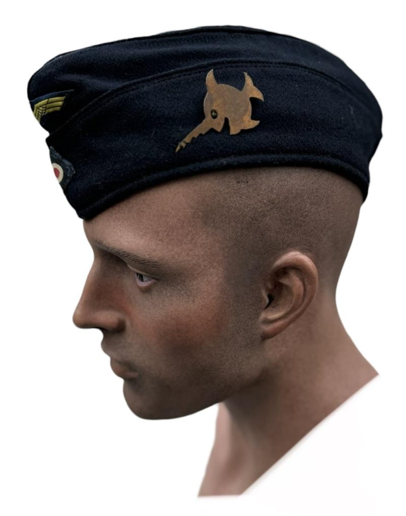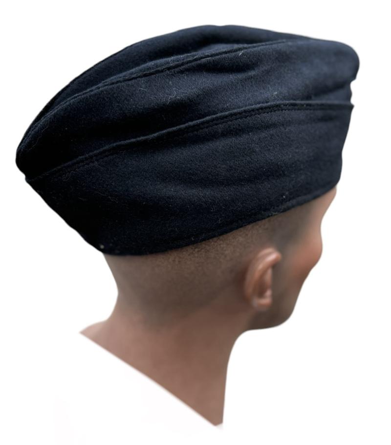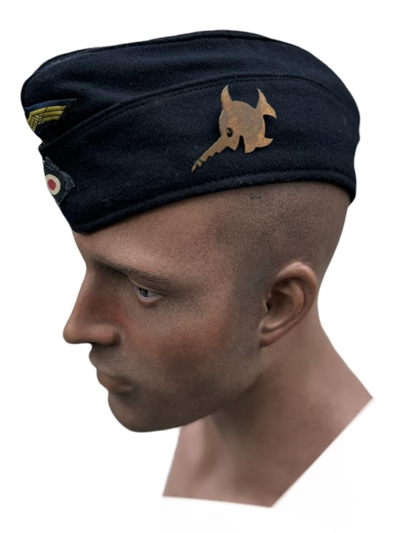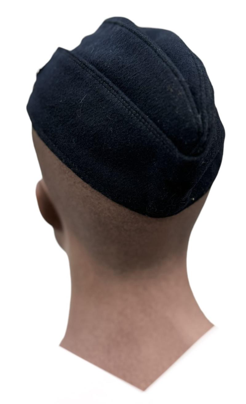“Schwitters” the Kriegsmarine side cap has a good mannequin head size. Overal a very nice used and named, original Kriegsmarine side cap with a very nice replica cap badge in very good condition