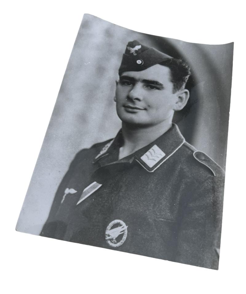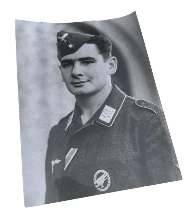 Fallschirmjäger Portrait Photograph Nice portrait photograph of a Fallschirmjäger wearing the so-called “Fallschirmjäger Schutzen Abzeichen” Size about A3. In very good condition.
