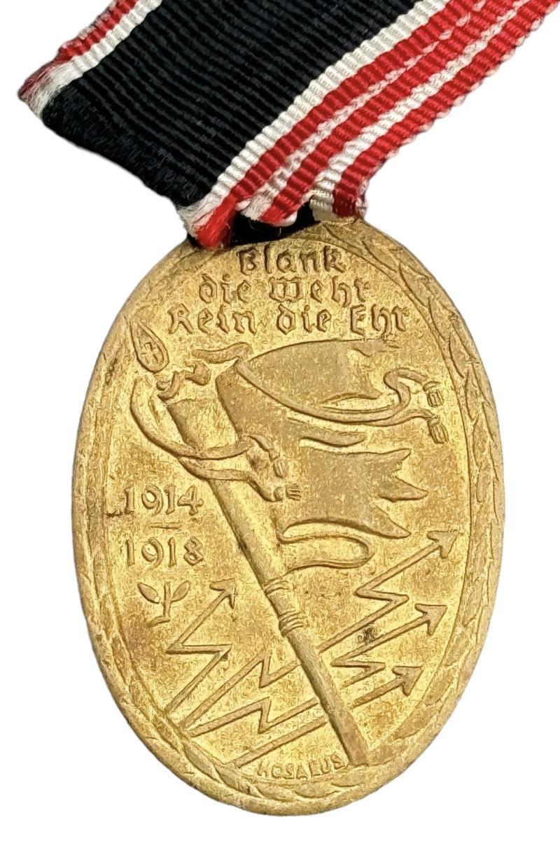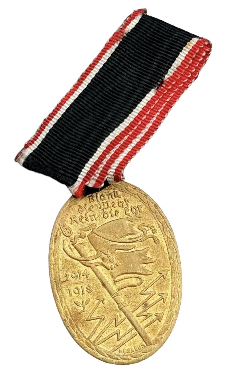 Verdienstorden Blank die Wehr Rein die Ehr 1914 - 1918 Medal for service in the great War 14-18 “Der Kyfhauser Bund” With its original ribbon in very good condition.