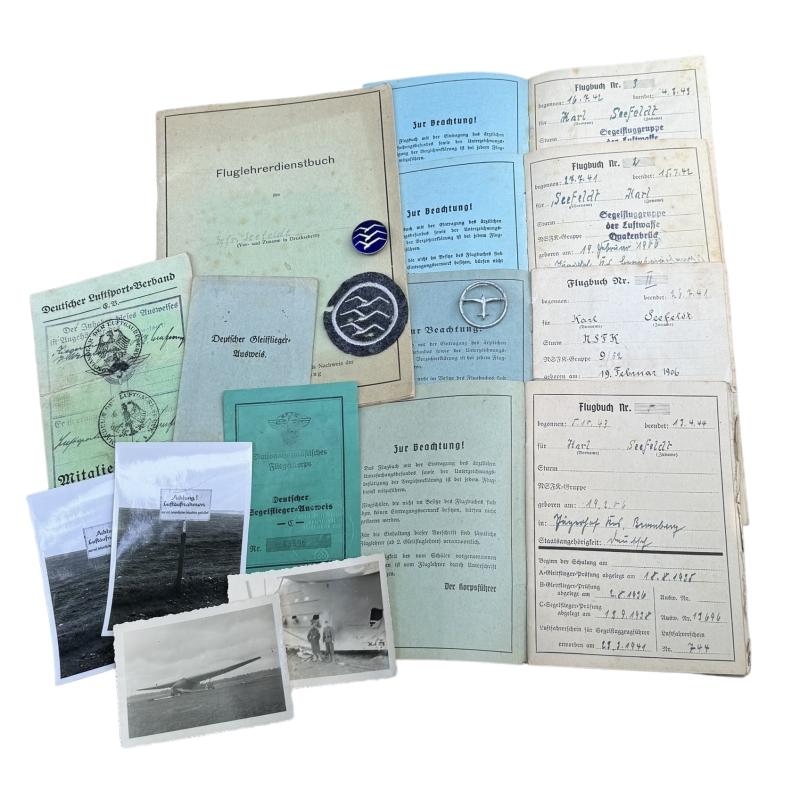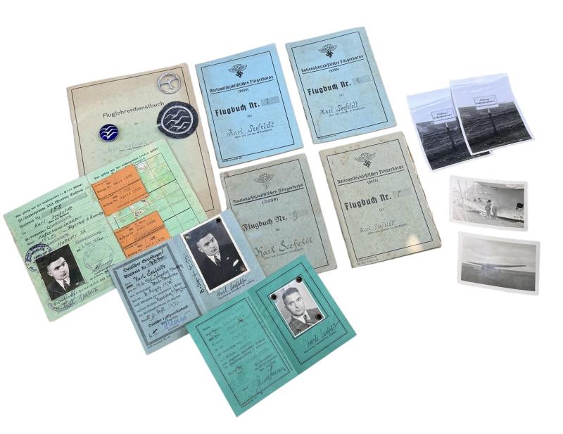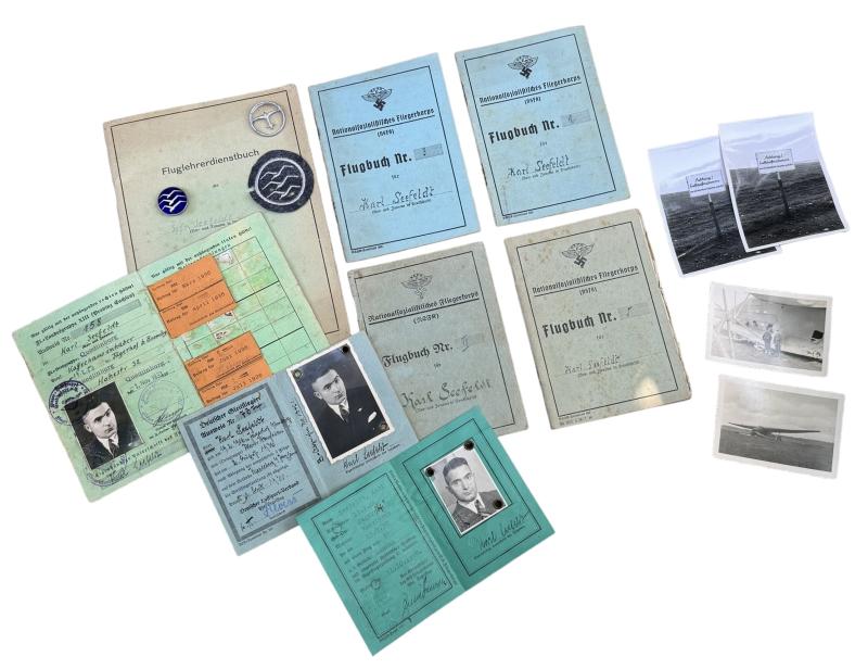 , “Deutsches Gleitflieger Ausweis”, Deutscher Luftsport-Verband, Mitglieds-Ausweis, 5x “NSFK Flugbuch” (all his glider flights), His “Luftwaffe Glider