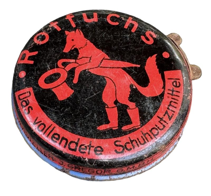 Wehrmacht era Shoe Polish Rothfuchs Nice decorative metal can of Wehrmacht era “Shoe Polish Rothfuchs” nice display item for a personal item collection. In very good condition.