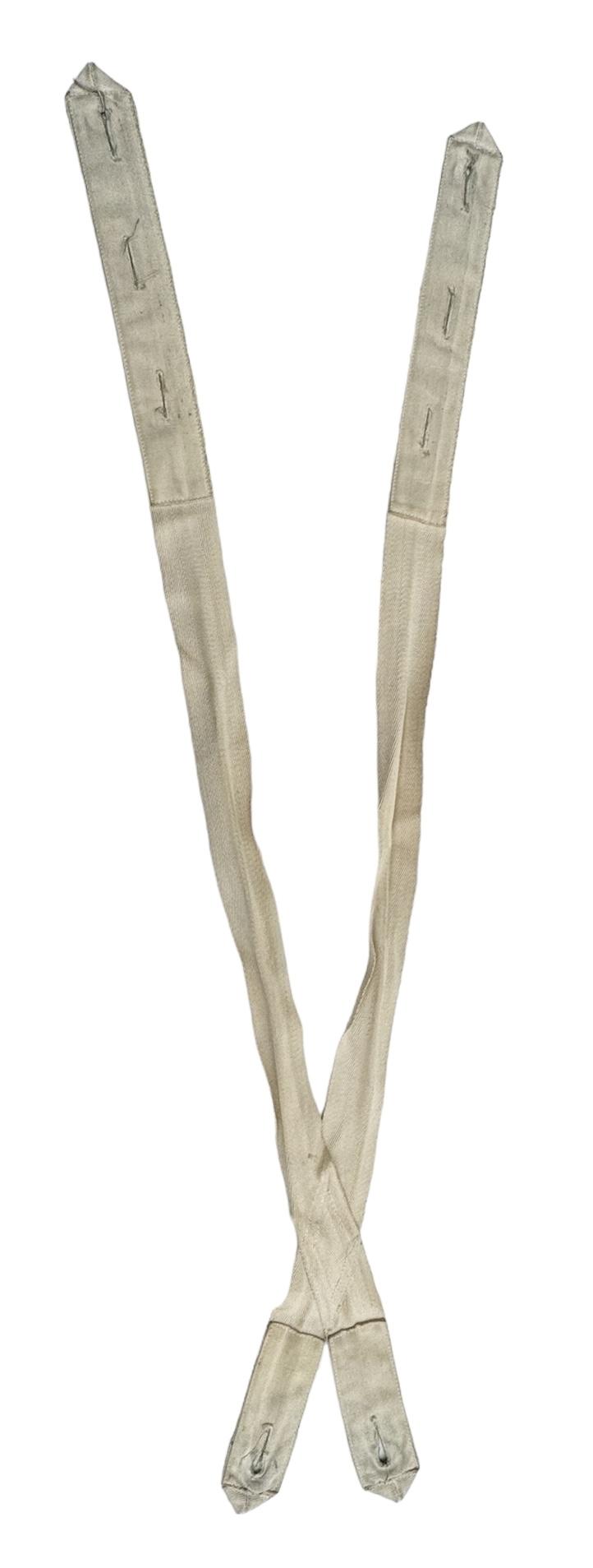 Wehrmacht Winter Trousers Suspenders Nice used Wehrmacht winter trousers suspenders. For reversible and non reversible winter trousers. In very good condition.