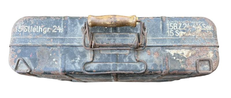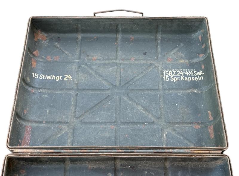 Wehrmacht M27 Stick Grenade Transport Case Used but still a very nice Wehrmacht M27 Stick Grenade transport case in 95% of its original field grey camo paint. In used but good condition.