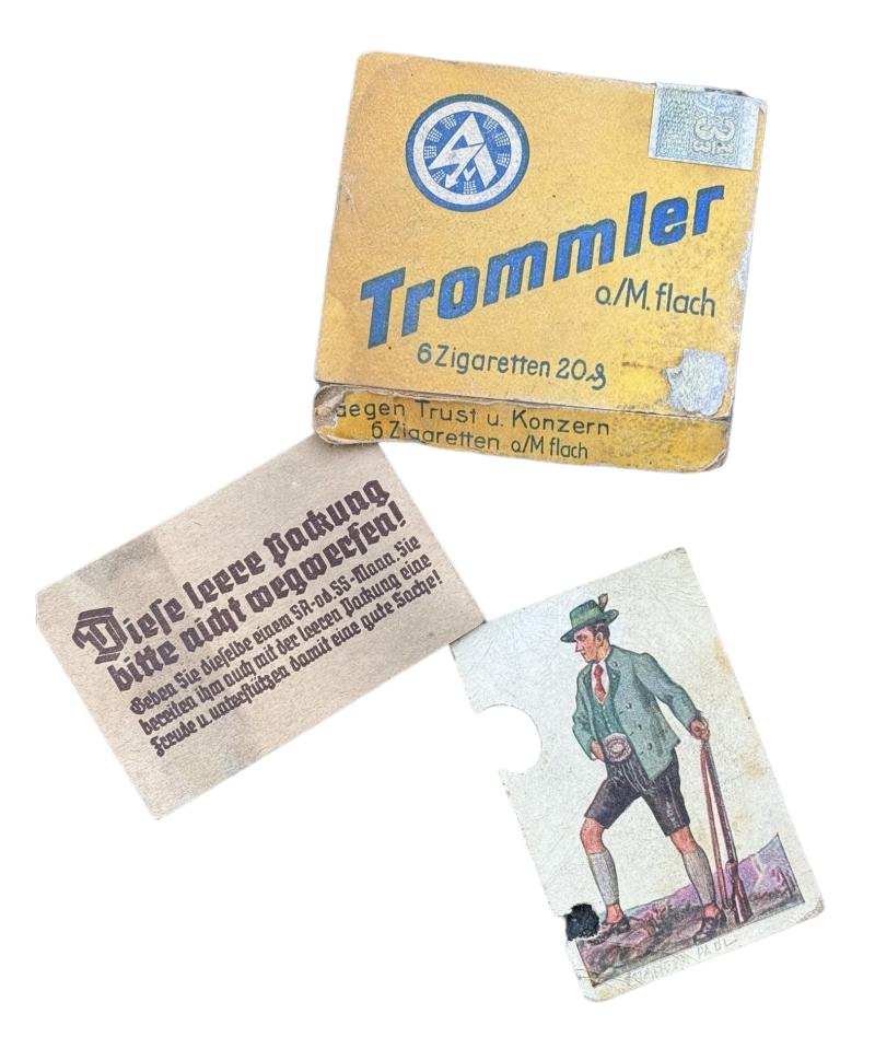 SA Trommler Cigarette Package Extreme rare cigarette package! “SA Trommler, Sturm Zigaretten Fabrik” (no content) Package for 6 cigarettes. Made in the “Third Reich” In very used condition!