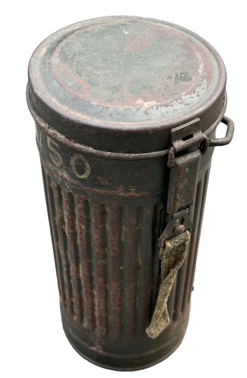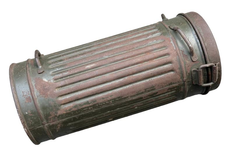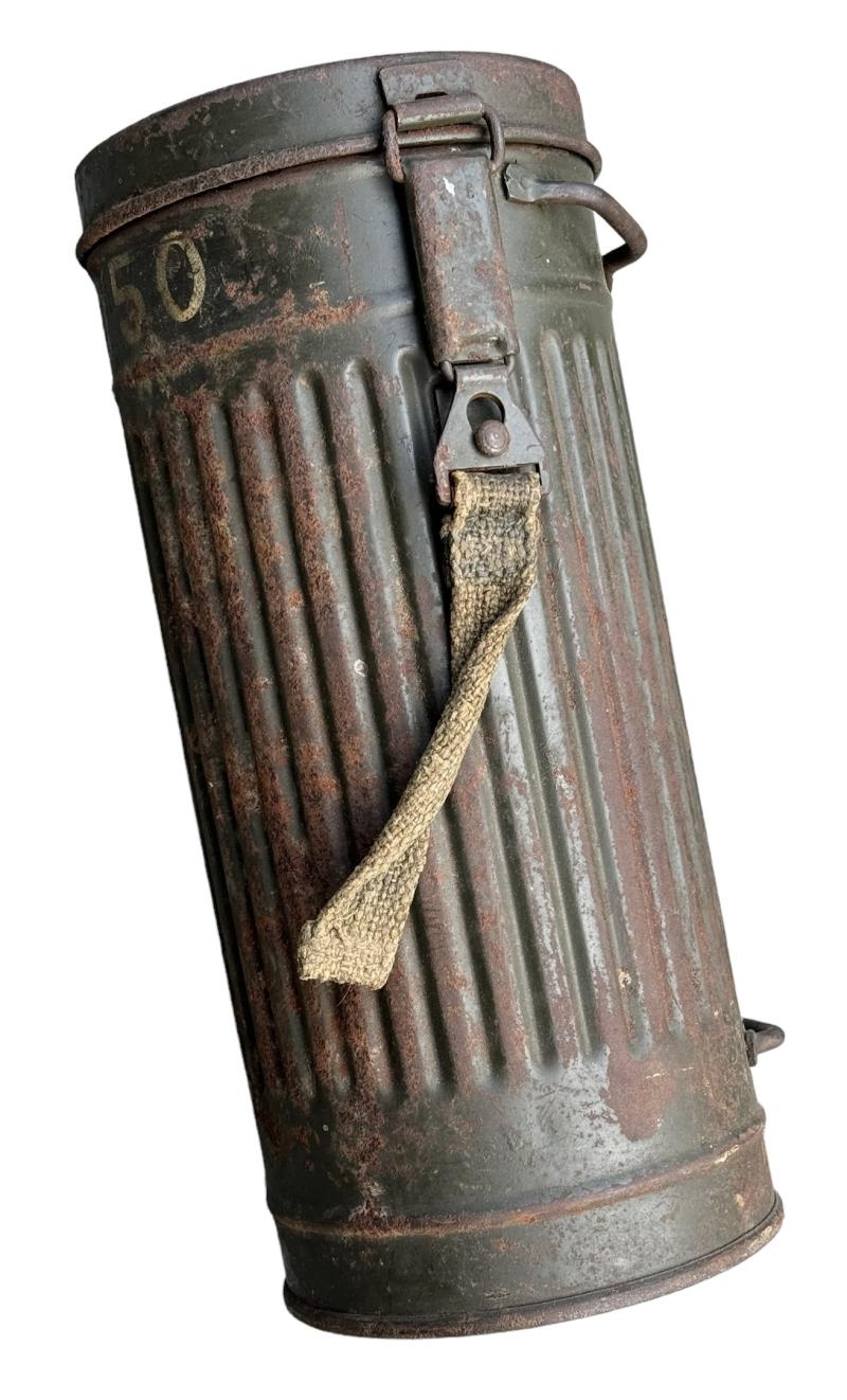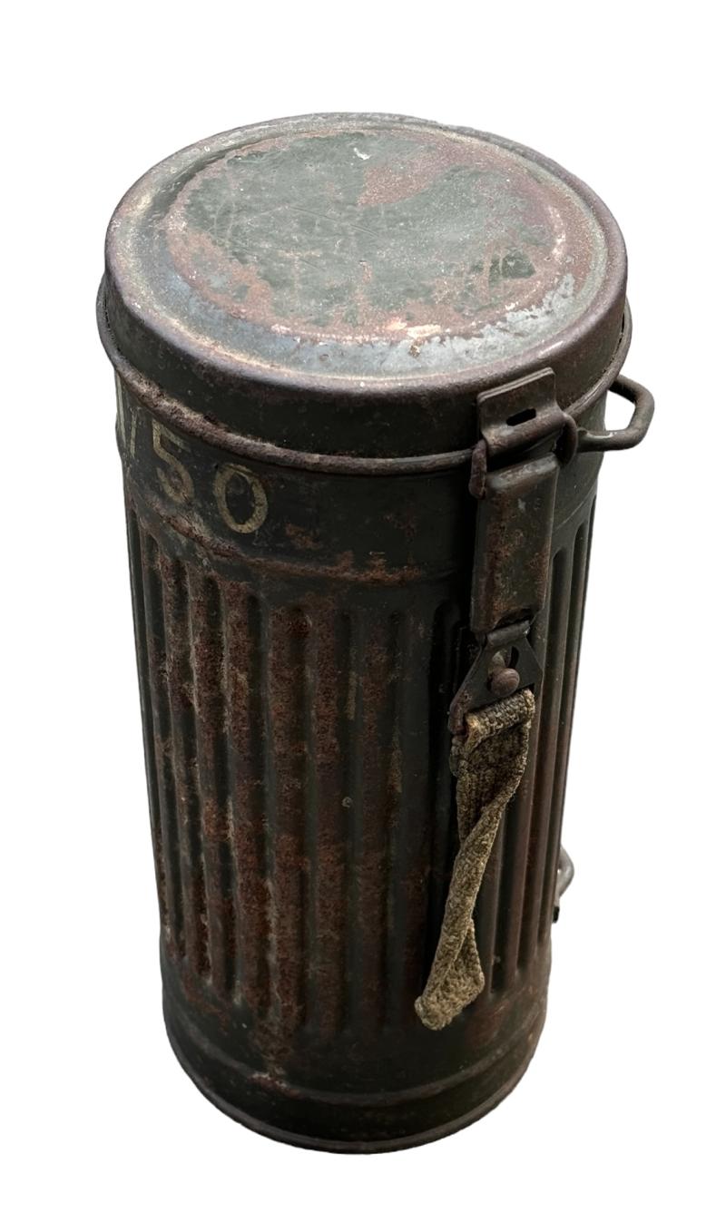 Nice used Wehrmacht M31 gasmask en M31 gasmask cannister. In 90% of its original field/gray camo paint. Cannister straps are missing but are often for sale. Overal a nice used Wehrmacht M31 gasmask and cannister in used but good condition.