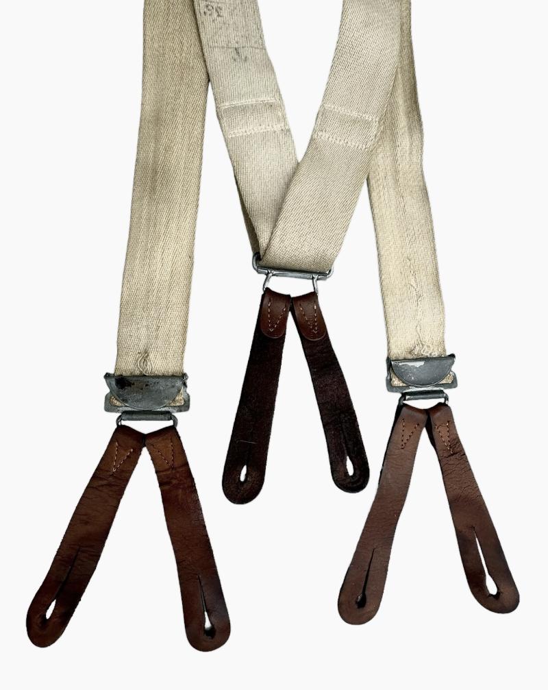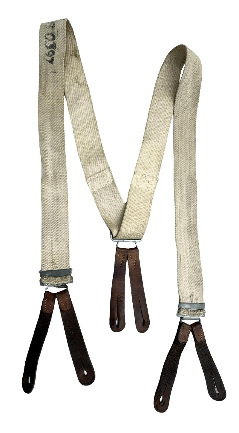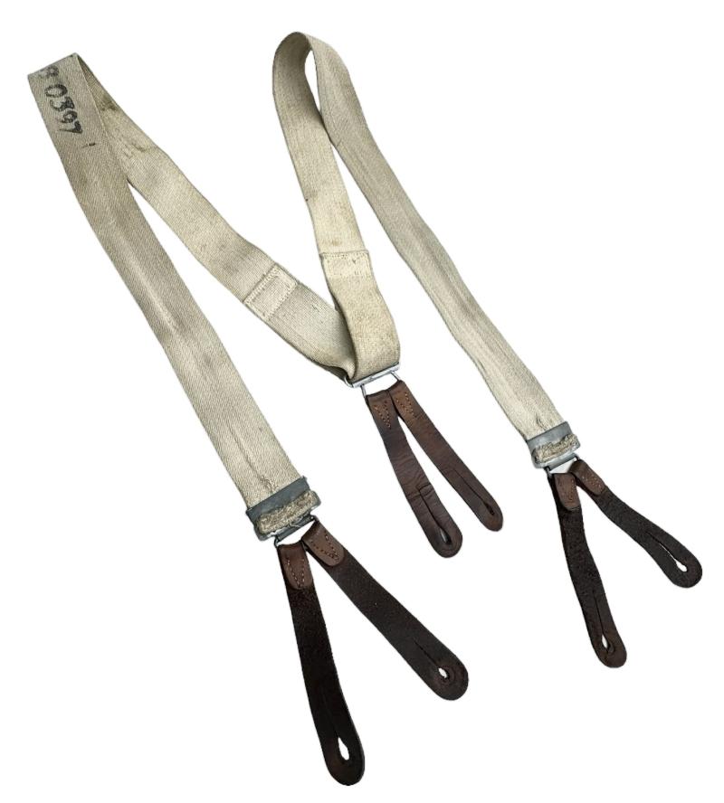 British WW2 Battle Dress Trousers Suspenders Very nice used British WW2 Battle Dress trousers suspenders. Marked but hard to read. Great to complete British Battle Dress trousers.