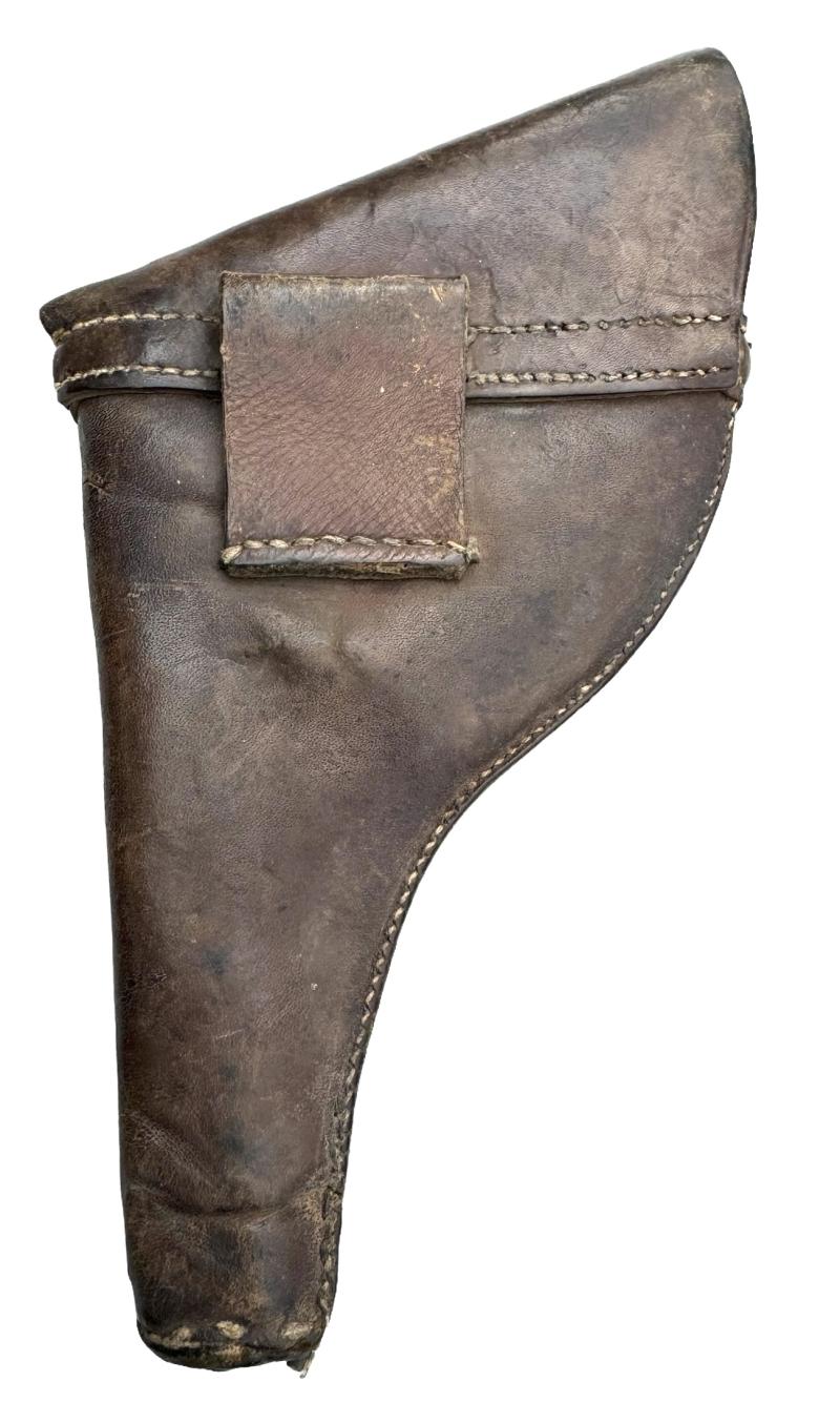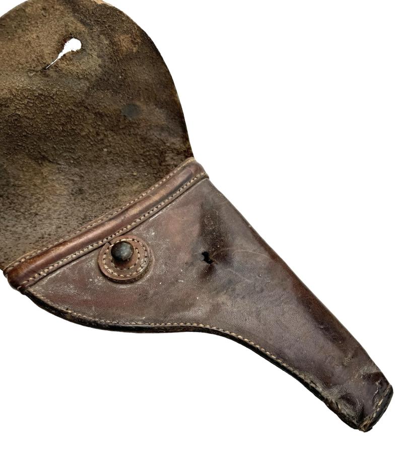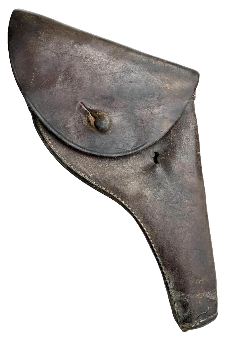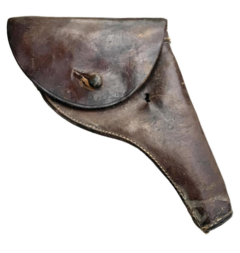 French WW2 Revolver Holster Nice used leather French WW2 revolver holster with a minor shrapnel damage at the front site. Leather in good and smooth condition.