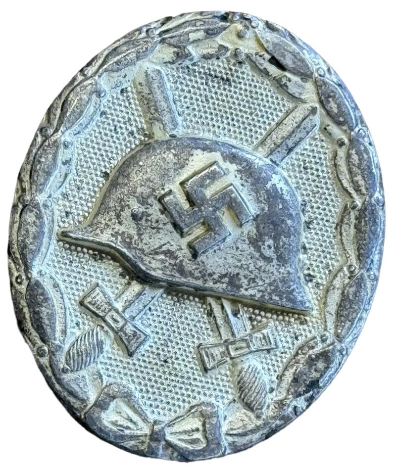 Wehrmacht Wound Badge Silver Nice used Wehrmacht wound badge in silver for 3 combat wounds Nicely maked marked “100” which is “Wächter & Lange, Mittweida” In used but in very good condition.