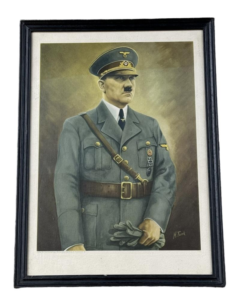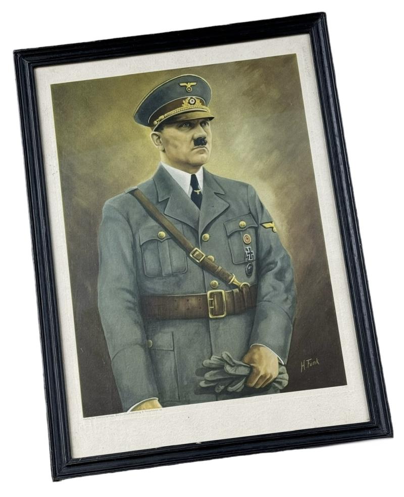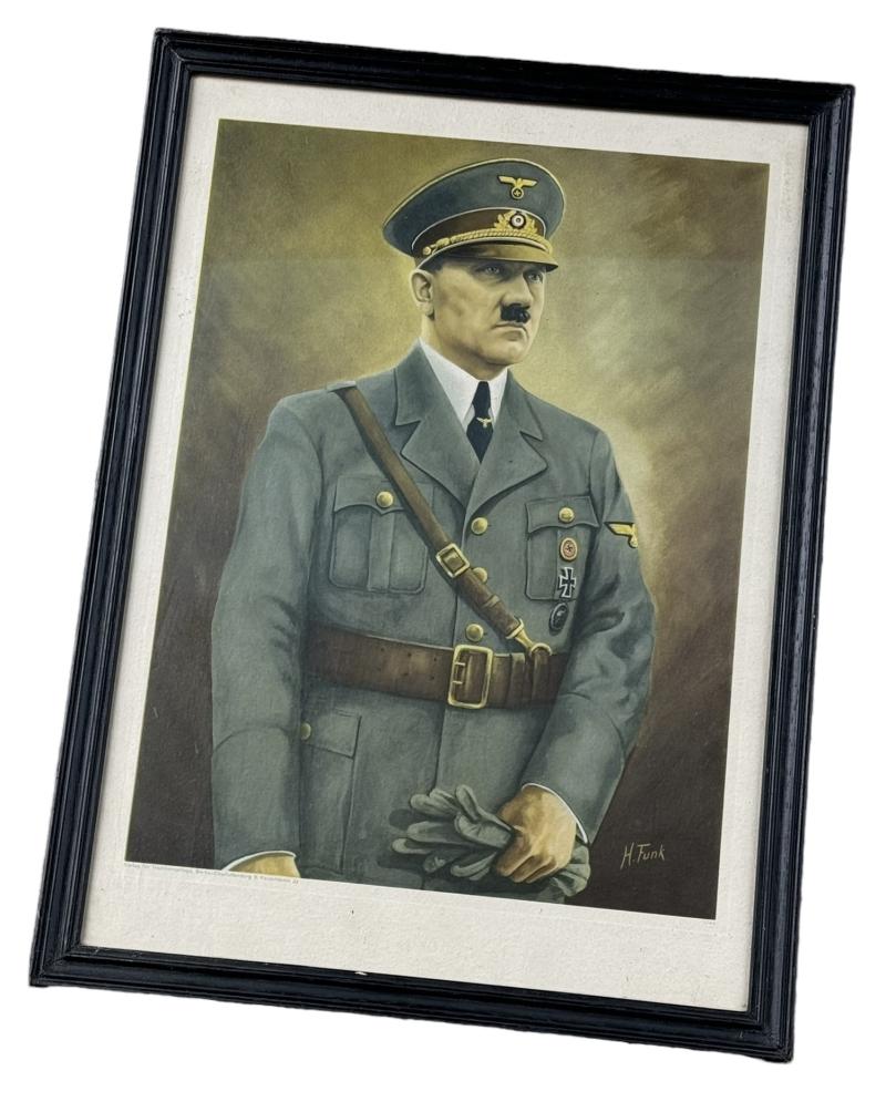 Adolf Hitler Portrait by H.Funk Nice original official Adolf Hitler state portrai in its original wooden frame. Portrait made by “H.Funk” size about frame A3 In used but in very good condition.