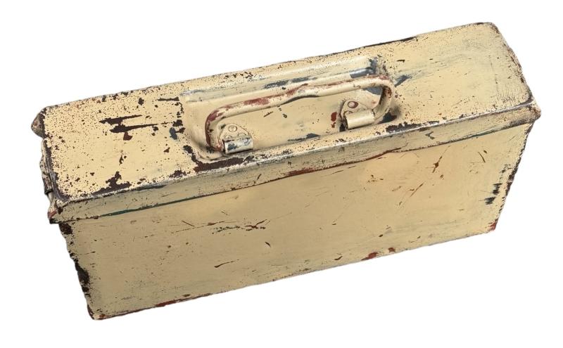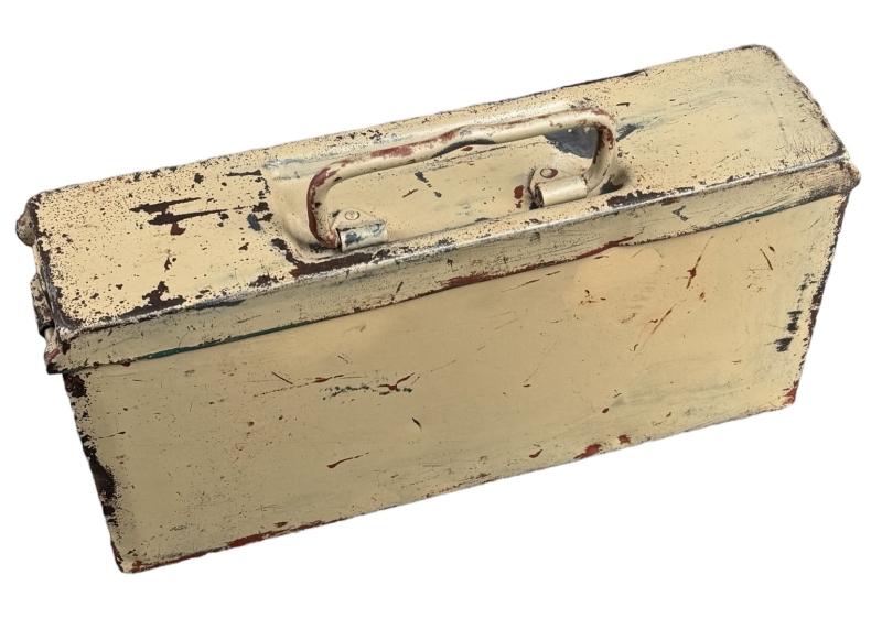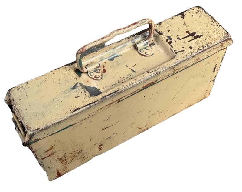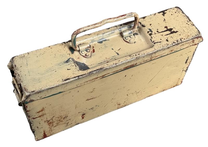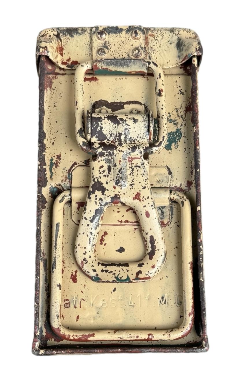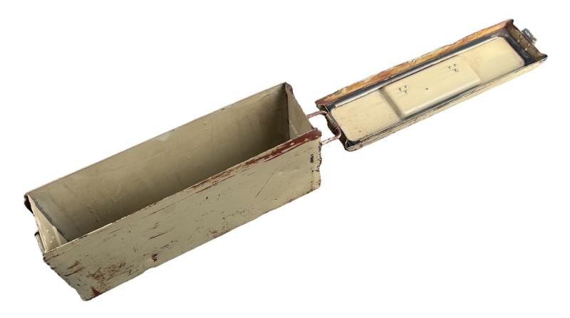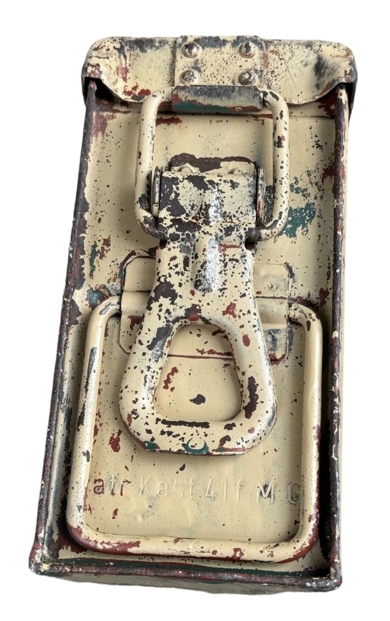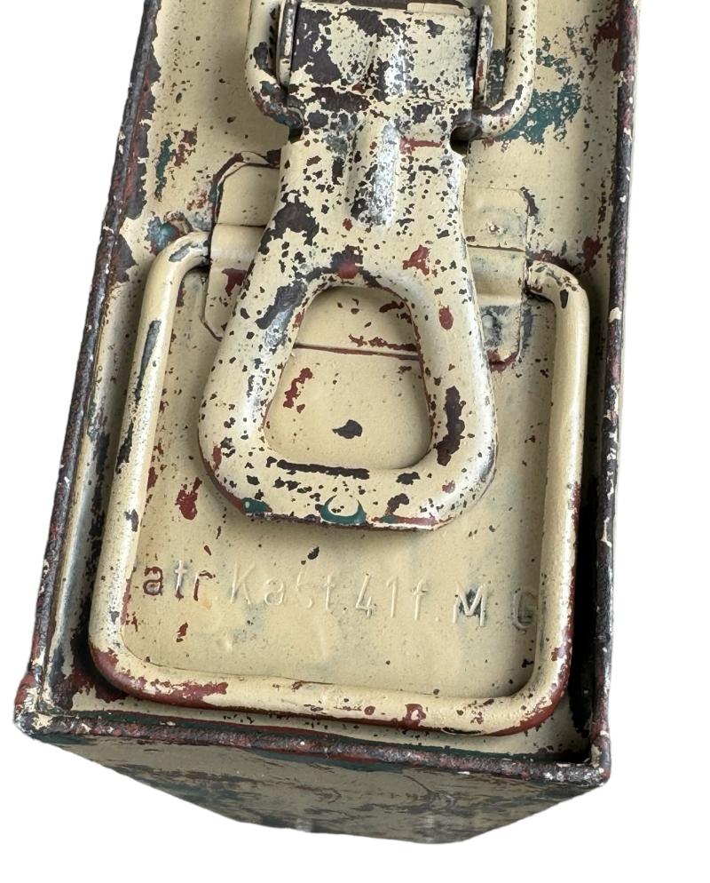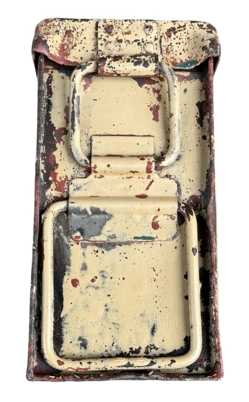 “Patronenkasten 41” metal ammunition case wich would holt 300 rounds of Cal. 8x67 machinegun ammunition. In nice tropical camo.