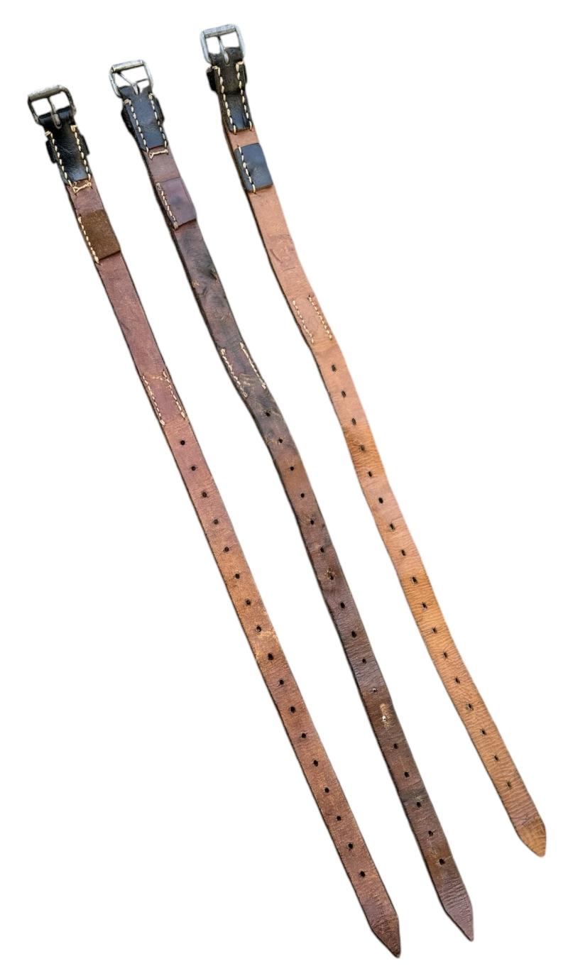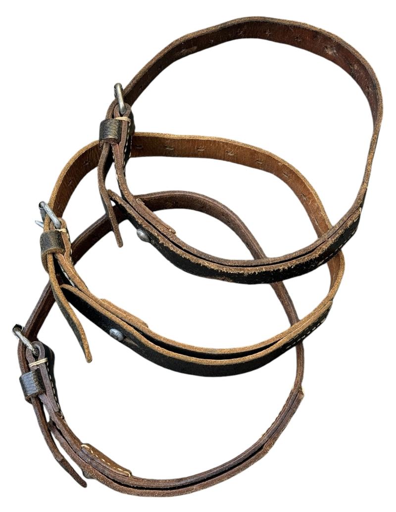 3 Wehrmacht Equipment Straps Used for Zeltbahn’s and other equipment. Maker (code) marked Overal in used but in very good condition. Great to complete Wehrmacht equipment collection.