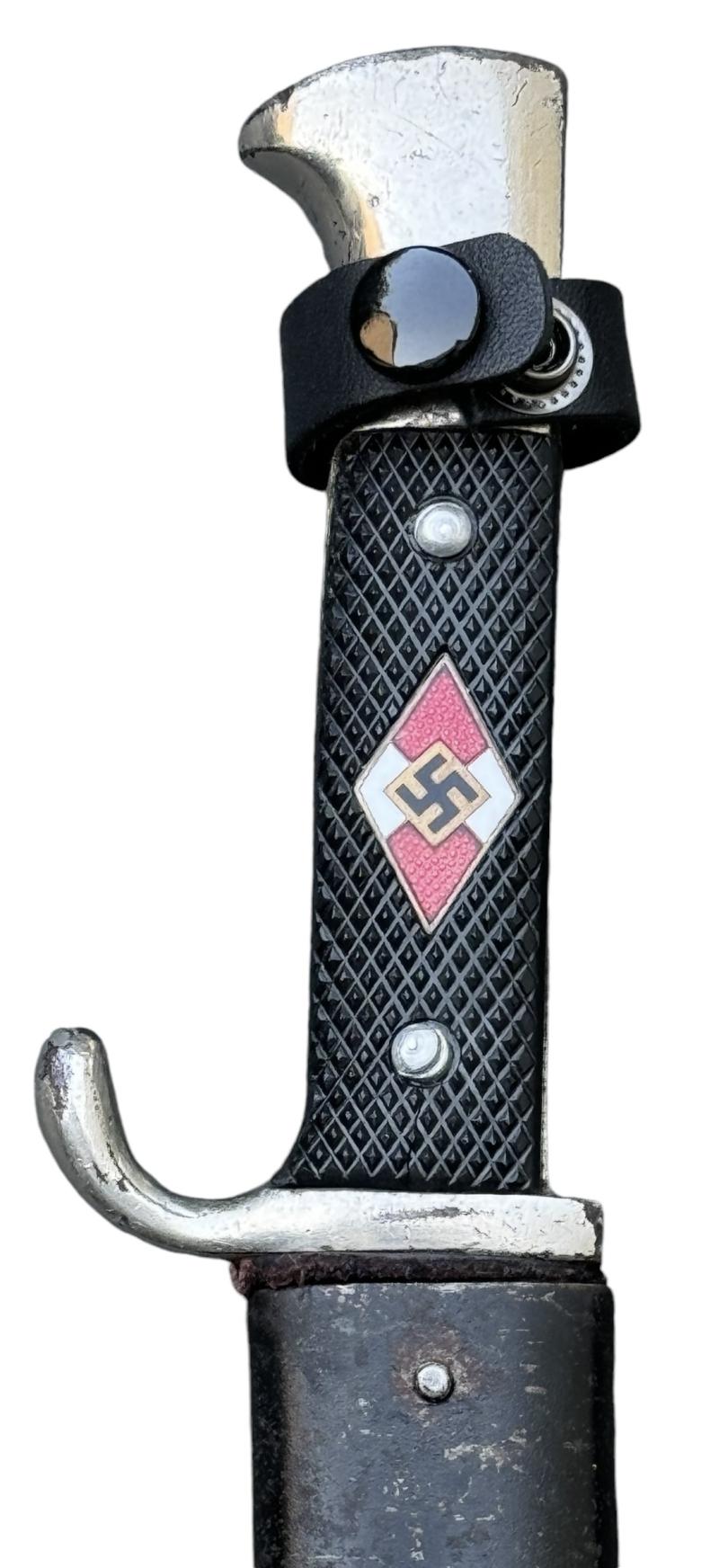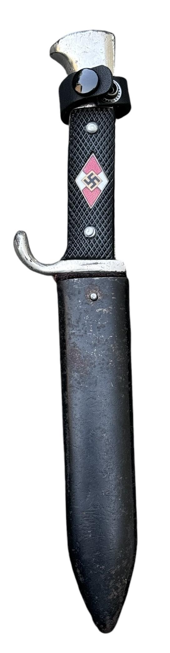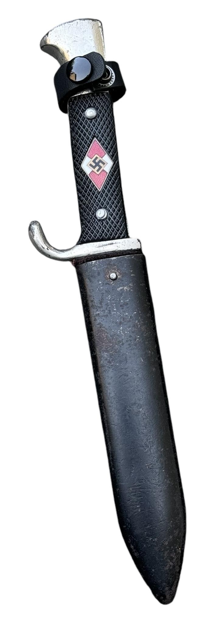 Nice used second model Hitler-Jugend dagger in its original metal scabbard (leather replaced).