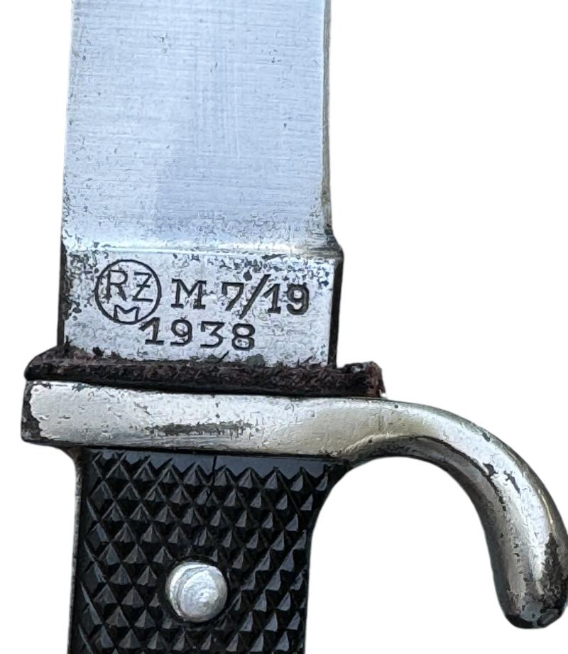 The dagger marked “RZM M7/19” which is “Ed. Wüsthof, Solingen” dated “1938”