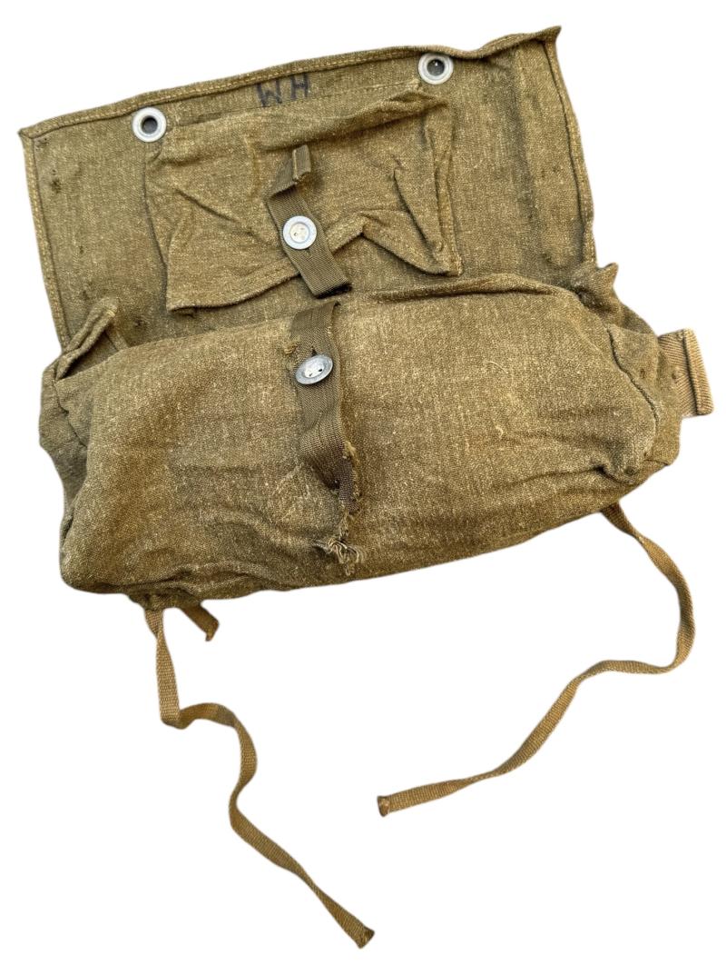 Very nice assault frame pouch, with tropical straps The Pouch was used to carry K98 cleaning kit and personel items and was attached to the assault frame. In nice near mint condition.