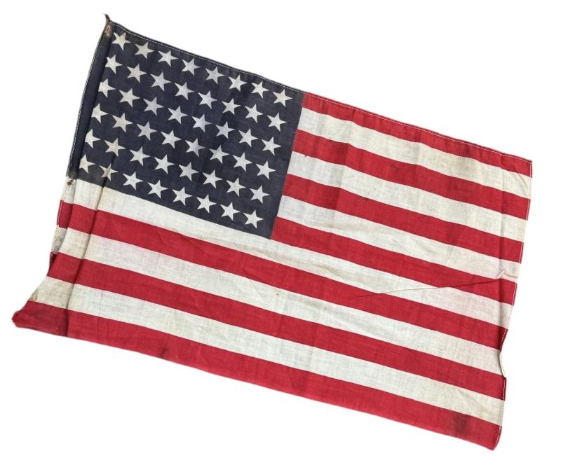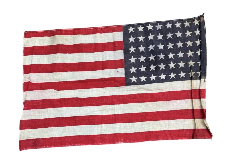 US WW2 48 star vlag on a small pole Very nice untouched US WW2 48 star flag from a small pole. Size “43”cm x “28”cm. In very good condition. Great for display!