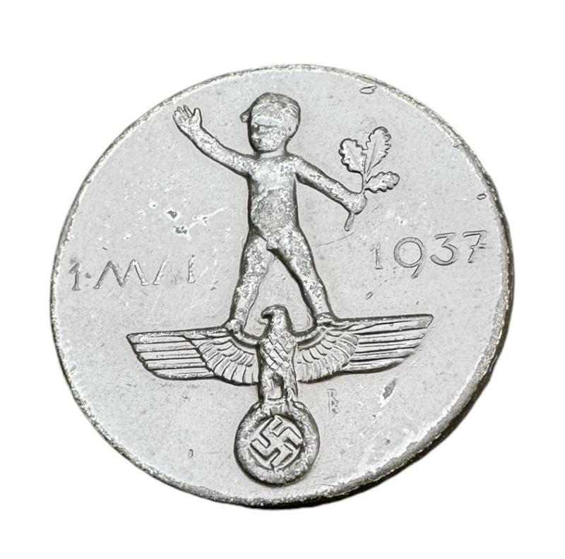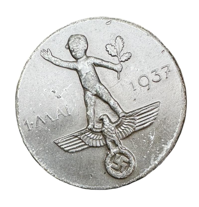 1th May 1937 Badge Nice used plastic made badge “1 Mai 1937” made by “Robinson, Oberstein” 1th of May was Labour day. Great for a badge collection!
