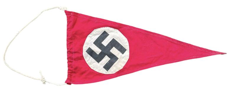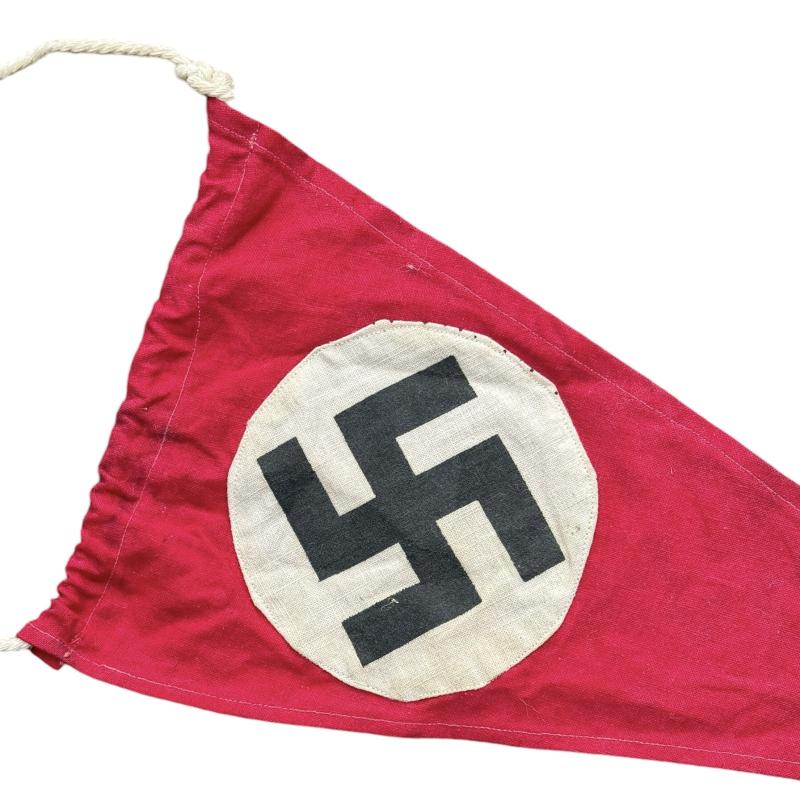 Third Reich Bicycle Pennant Nice used Third Reich bicycle pennant. With swastika on one side! With its original attachment string. In very good condition.