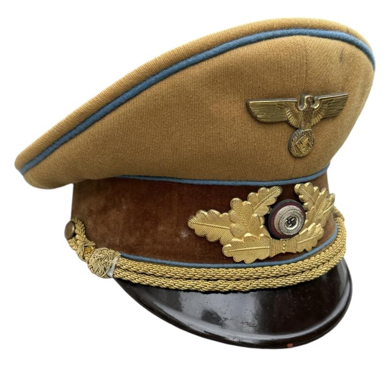 Fantastic used NSDAP political leader visor cap “Schirrmutze” with blue color for “Orts” level