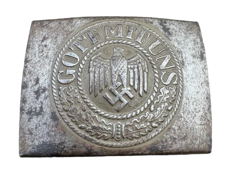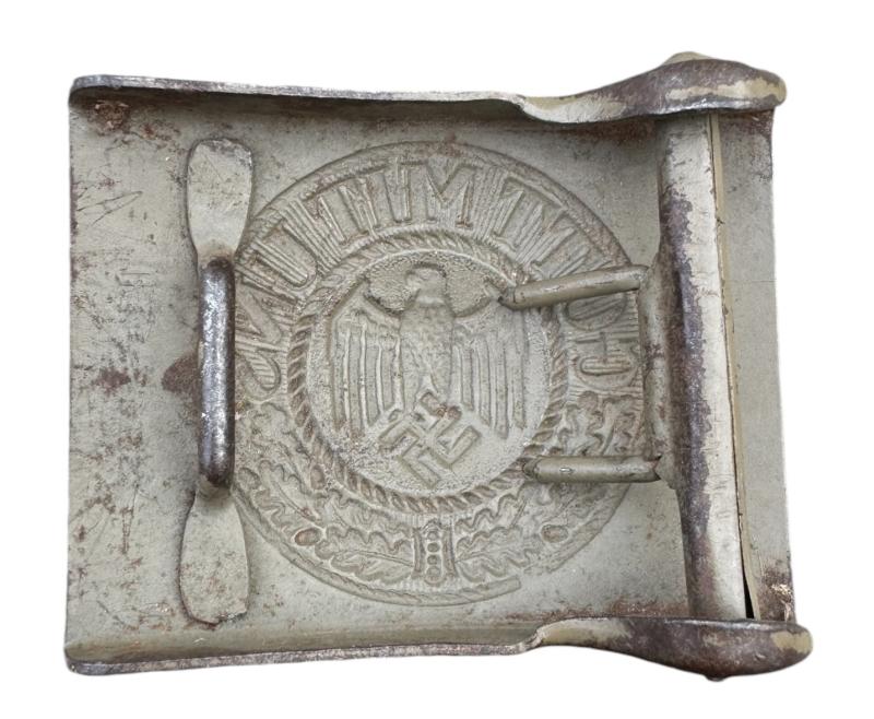 Wehrmacht steel Belt Buckle Used steel Wehrmacht enlisted belt buckle Non maker marked with 50% of its field/grey camo paint left. In used but in good condition.