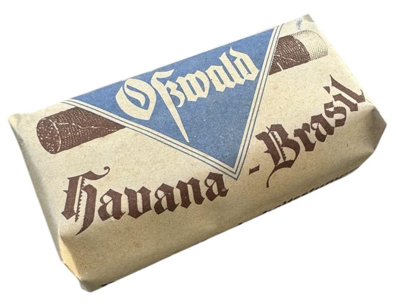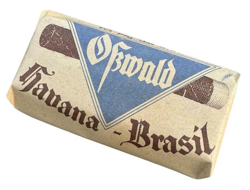 Wehrmacht era Cigars Nice original packaging with content 10 cigars. Wehrmacht era cigars by “Oswald Havana-Brasil” “Deutsche Handarbeidsstupen” Great for display!