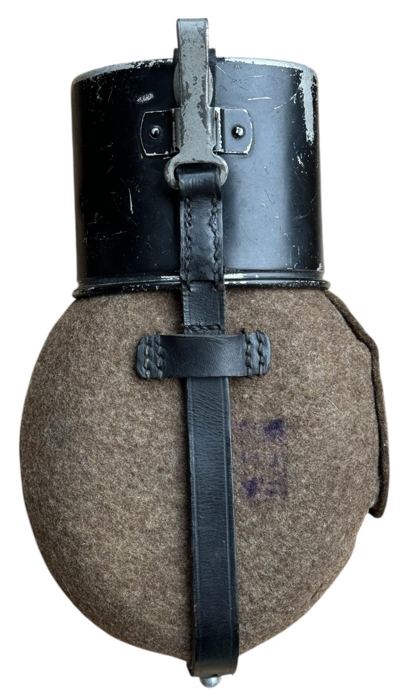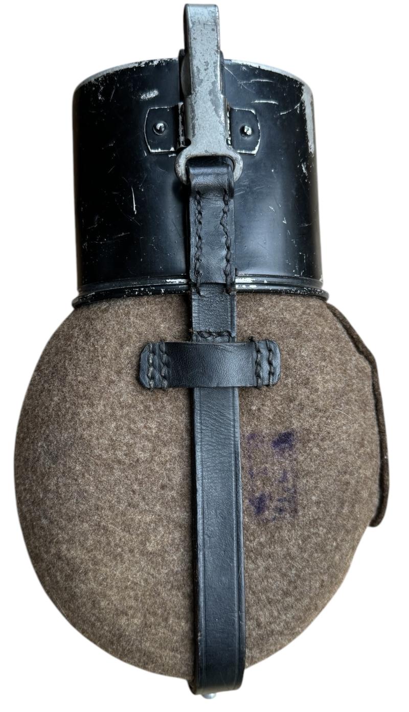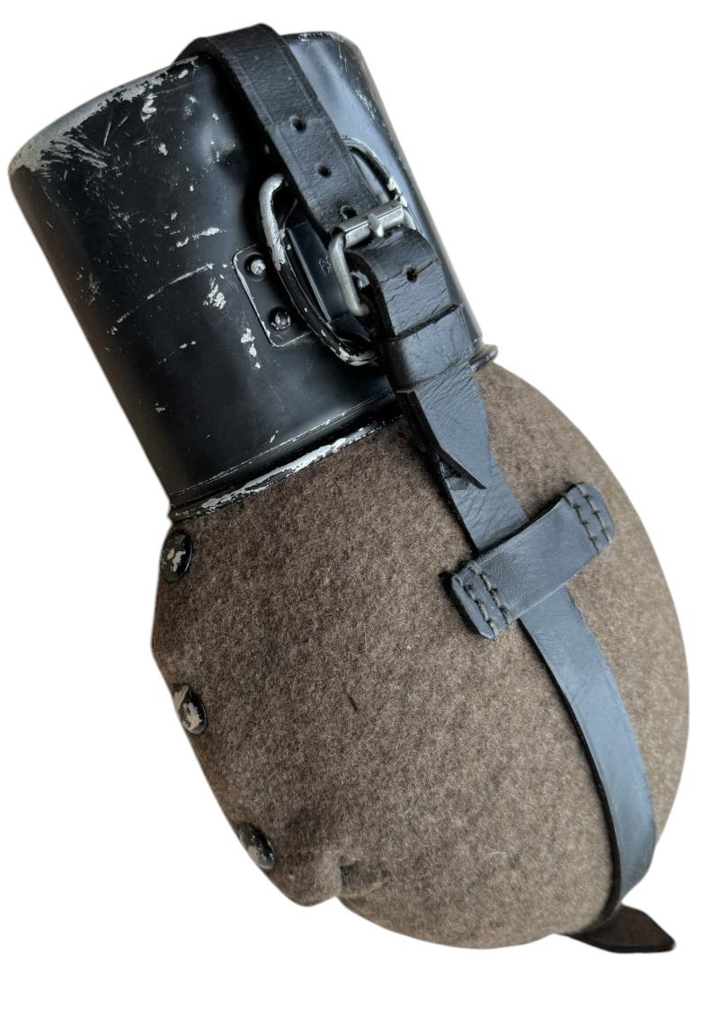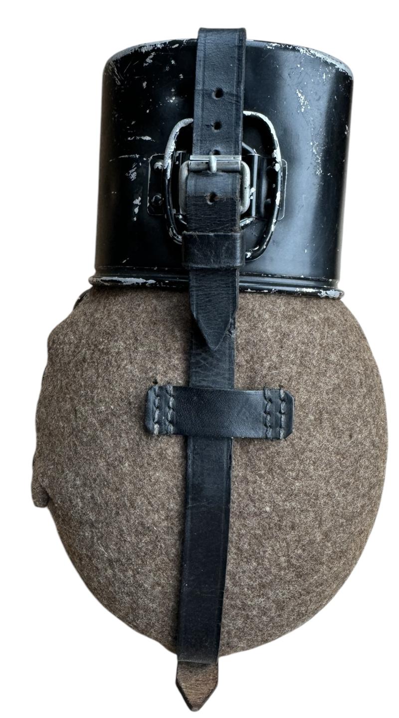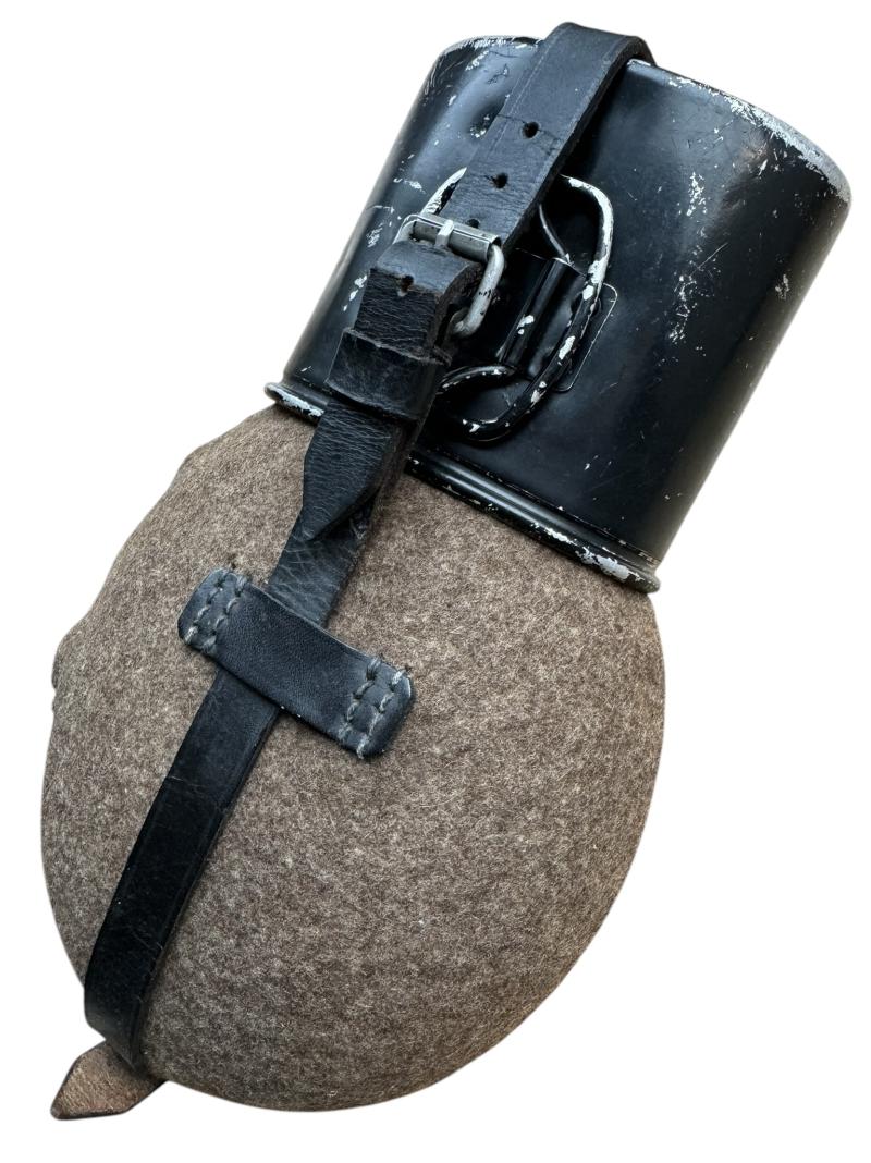 Wehrmacht M31 Canteen Very nice used Wehrmacht M31 canteen. With aluminum cup in its original black paint. Felt and leather in good condition. Great to complete Wehrmacht combat gear!