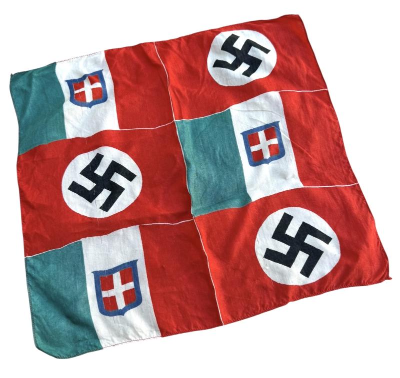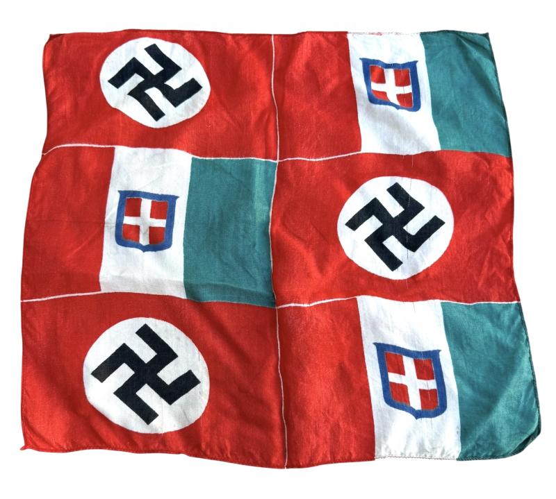 Third Reich-Italian Flag Very nice silk made little Third Reich-Italian flag Mixed Italian flag with the Third Reich flag In very good condition!