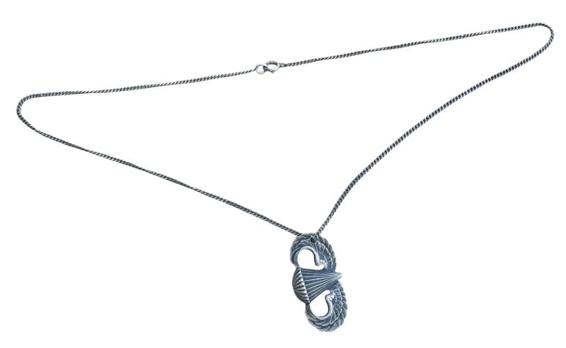 Very nice wartime made neckless made from and original US WW2 Paratroopers (Stirling Silver) Jump wing. In used but in very good condition.