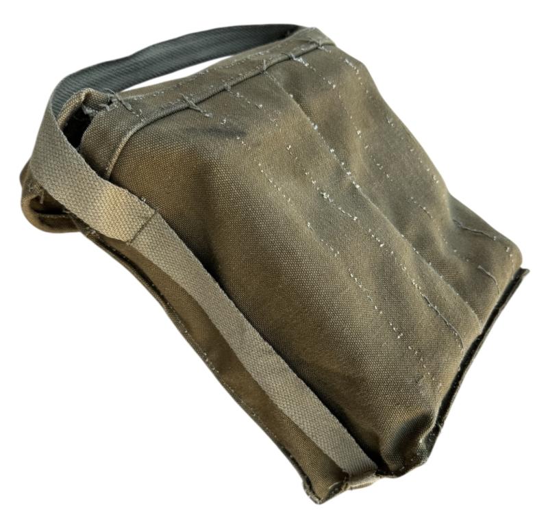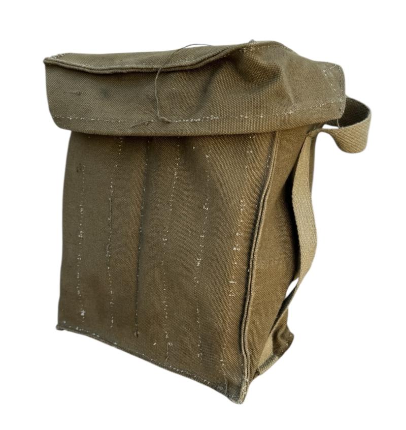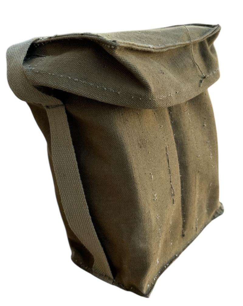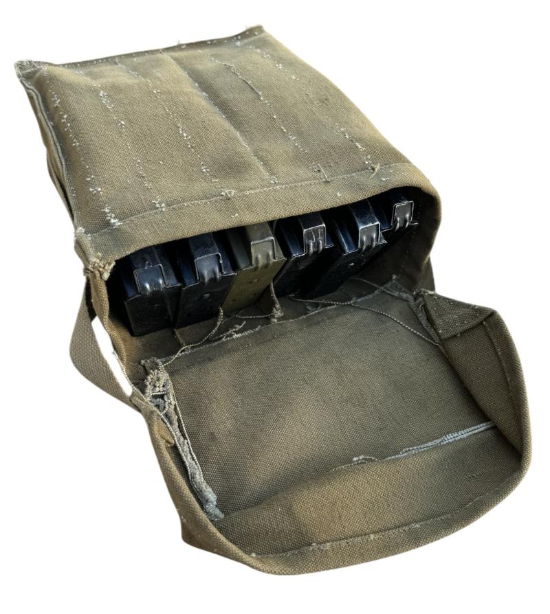 Used but nice British WW2 “Brengun” machinegun pouch for carrying 6 box magazines each 32 rounds Cal. 303 British. Pouch is missing some dividers inside. And the six box magazines are de-activated (one ear cut off) so for display only.