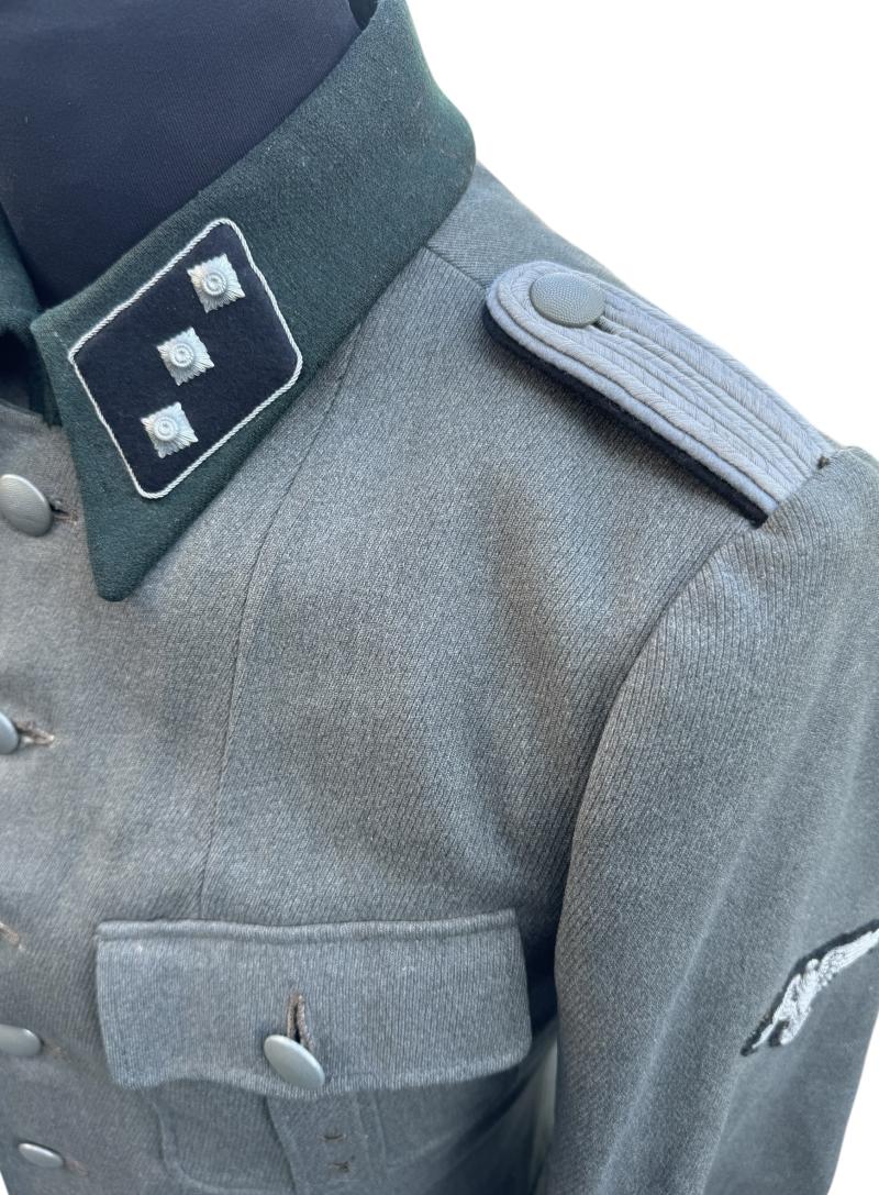 Fantastic WaffenSS Officers tunic of a Lieutenant in a transport unit (Nachschupp) in the rank of lieutenant “SS Untersturmfuhrer” With all its insignia originally sewed to the tunic. With original medal loops.