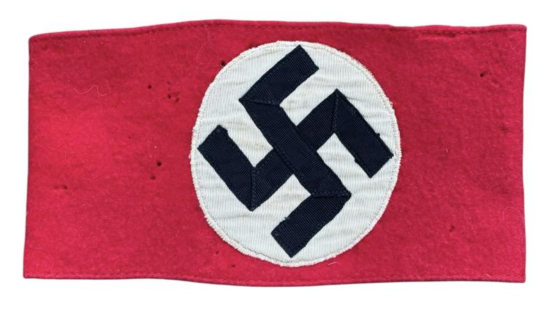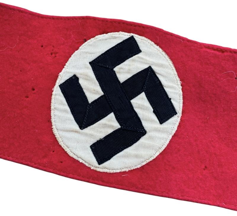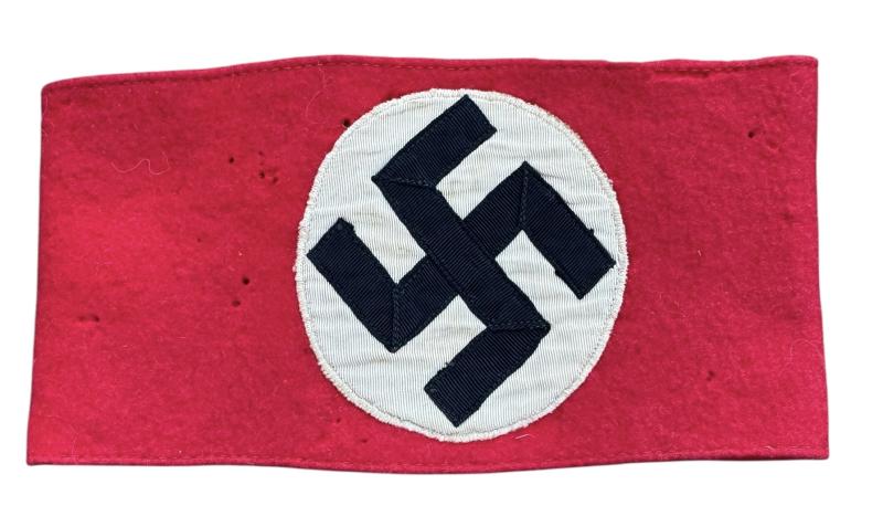 SA/NSDAP Armband Very nice used early wool quality SA/NSDAP armband with some minor moth nips. In used but good condition. Great on a political tunic or in an armband collection!