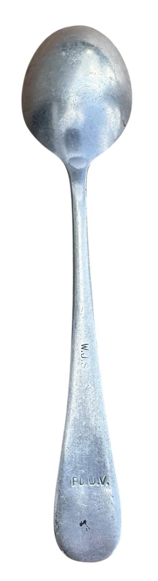 Luftwaffe Messhal Tea Spoon Nice used aluminum made Luftwaffe tea spoon. “F.L.U.V.” marked, which is “Flieger Unterkunft” Maker marked “W.J.S.” Tea spoon is in used but in good condition.