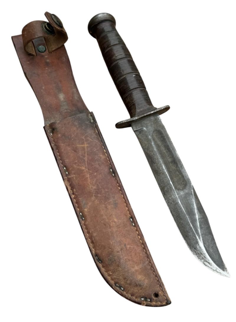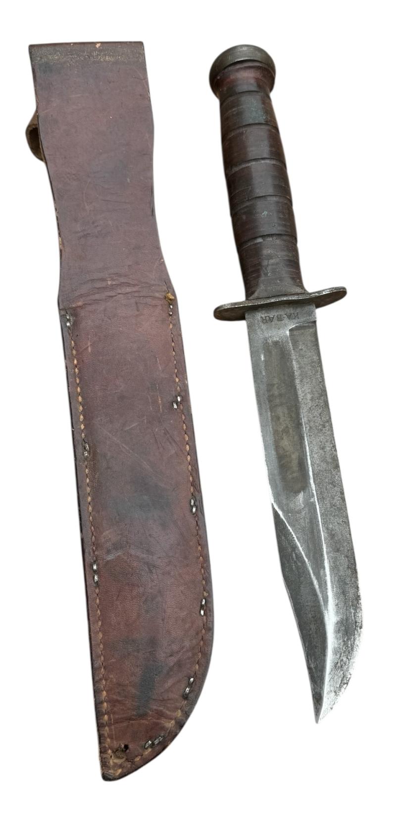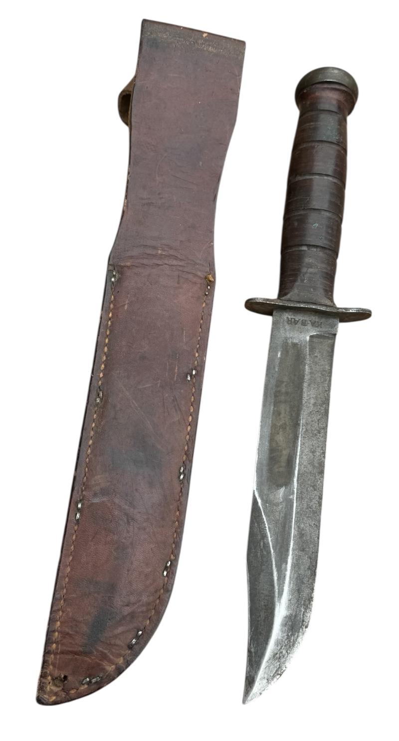 US WW2 Ka-Bar Combat Knife Nice used US WW2 so-called “Ka-Bar” combat knife. In its original leather scabbard. Used by all kinds of combat units whitin the US Army. In used but in very good condition.