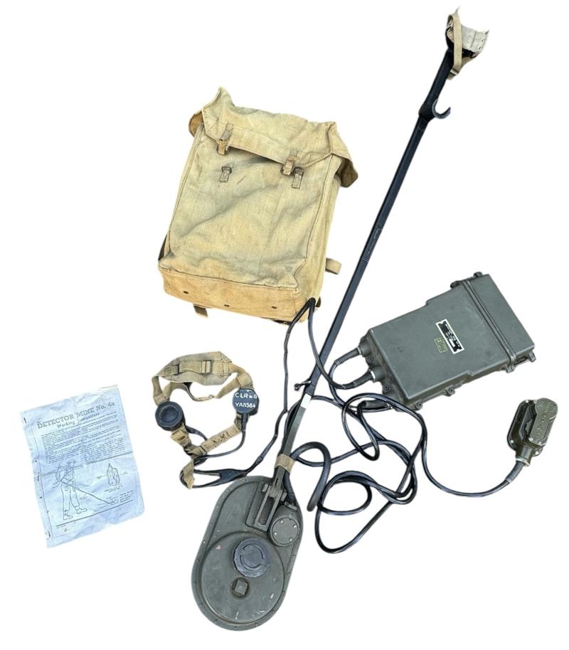 Very nice complete British WW2 “Mine” detector number 4A in its original carrying backback dated “1944” with instructions manual.