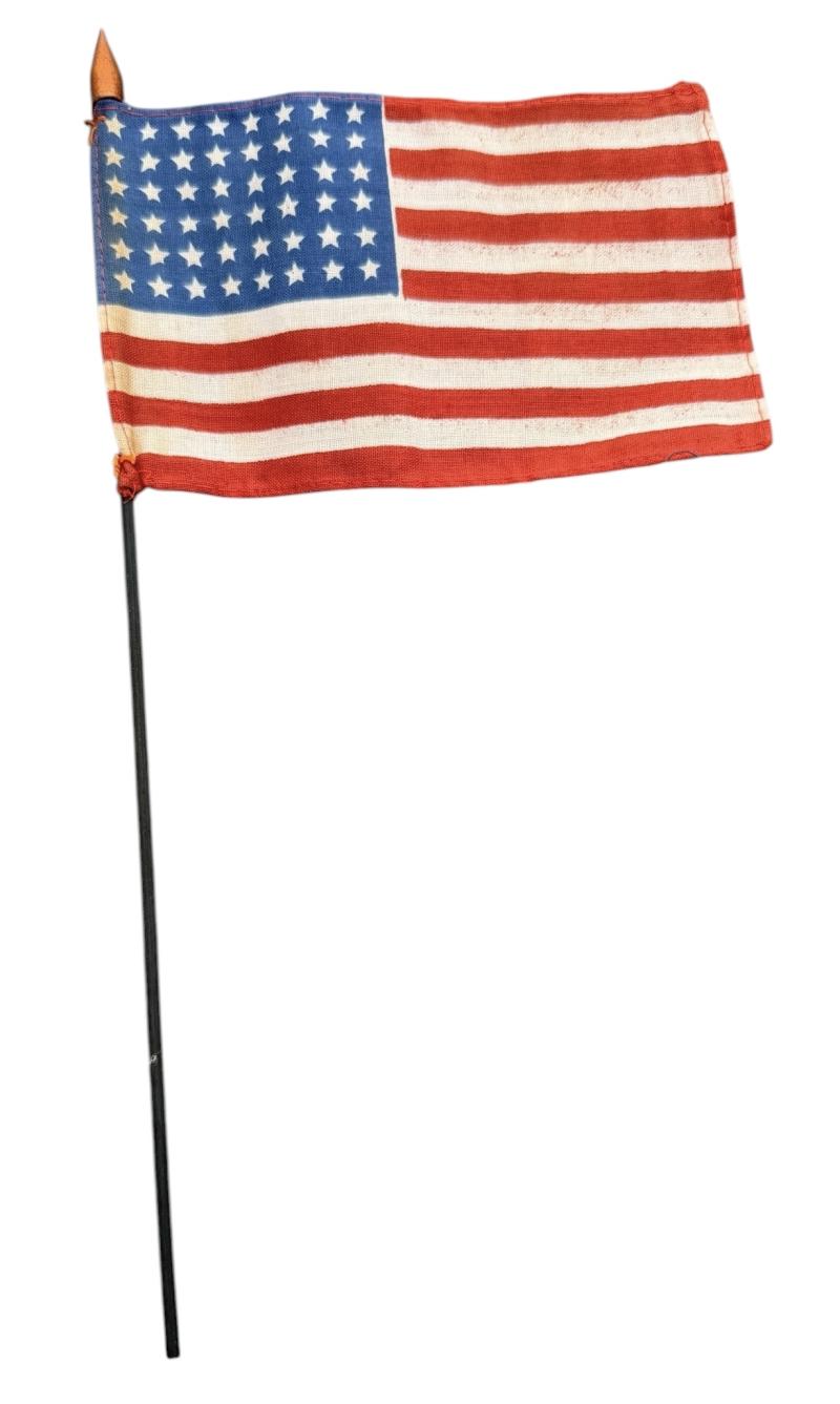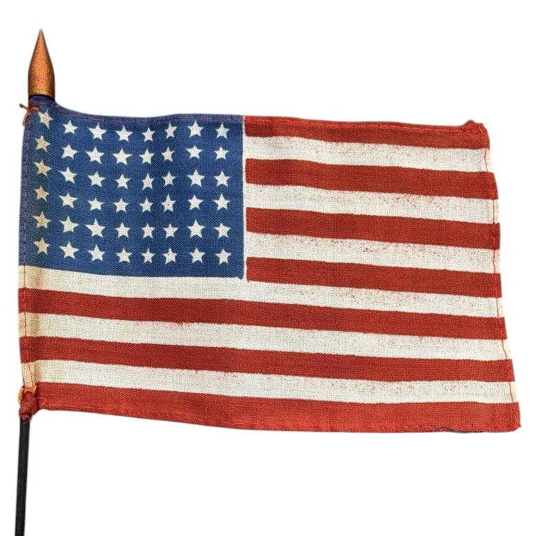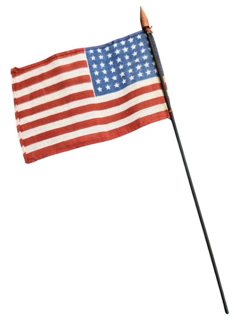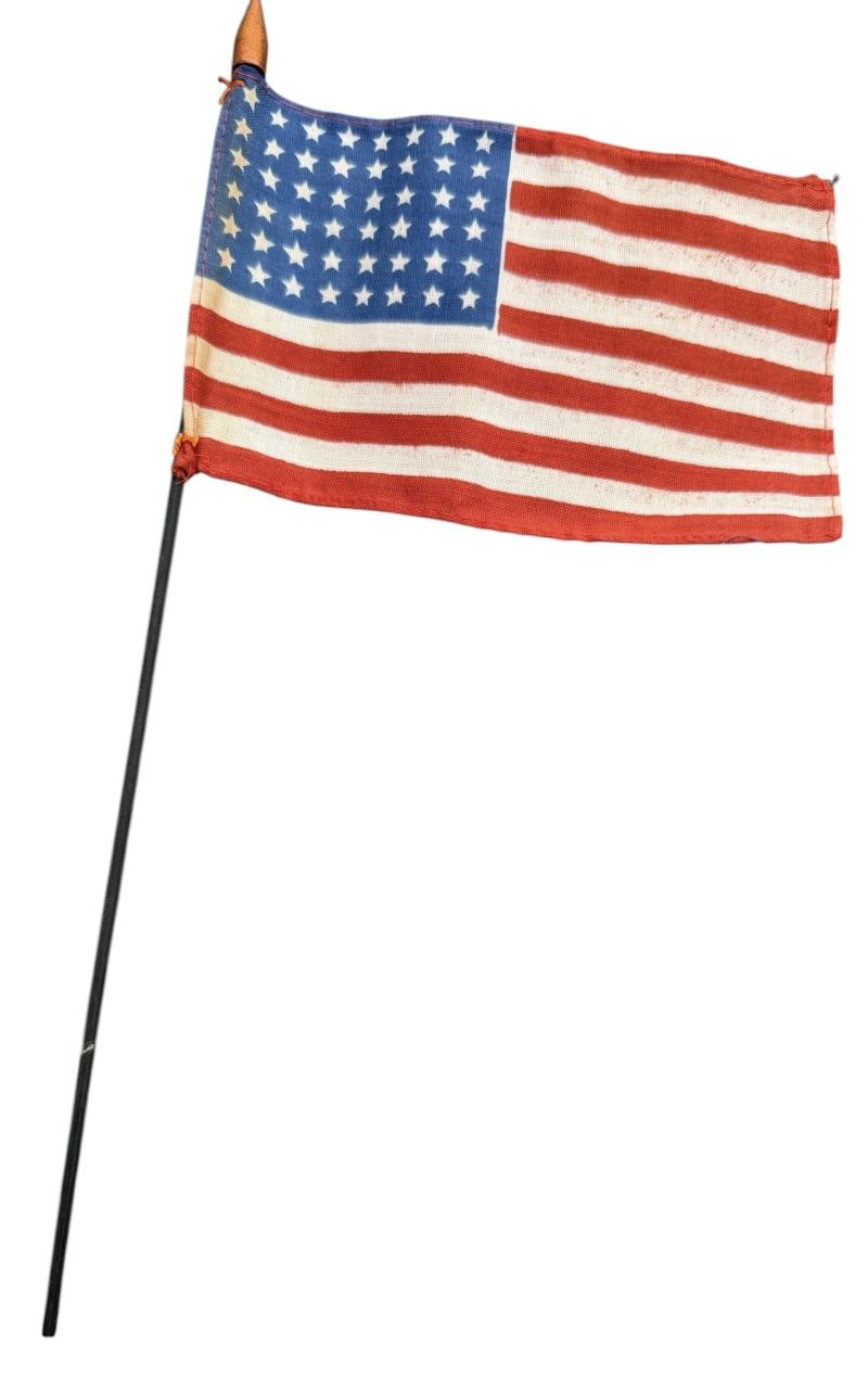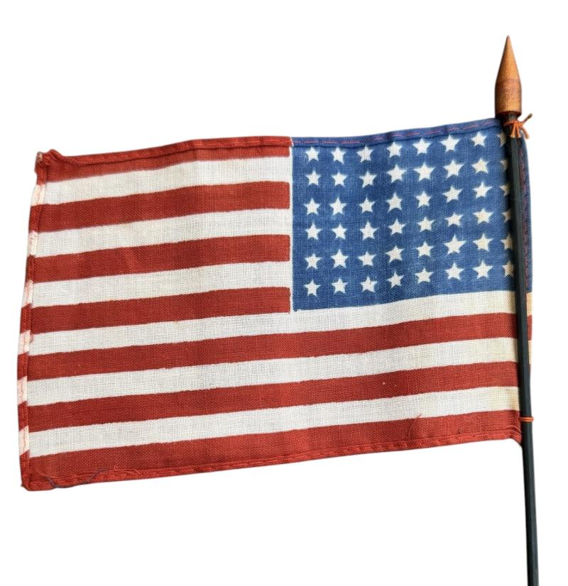 US WW2 48 star Little Flag on pole Very nice made little US WW2 48 star flag on a pole Flag size “13”cm x “8,5”cm In very good condition.