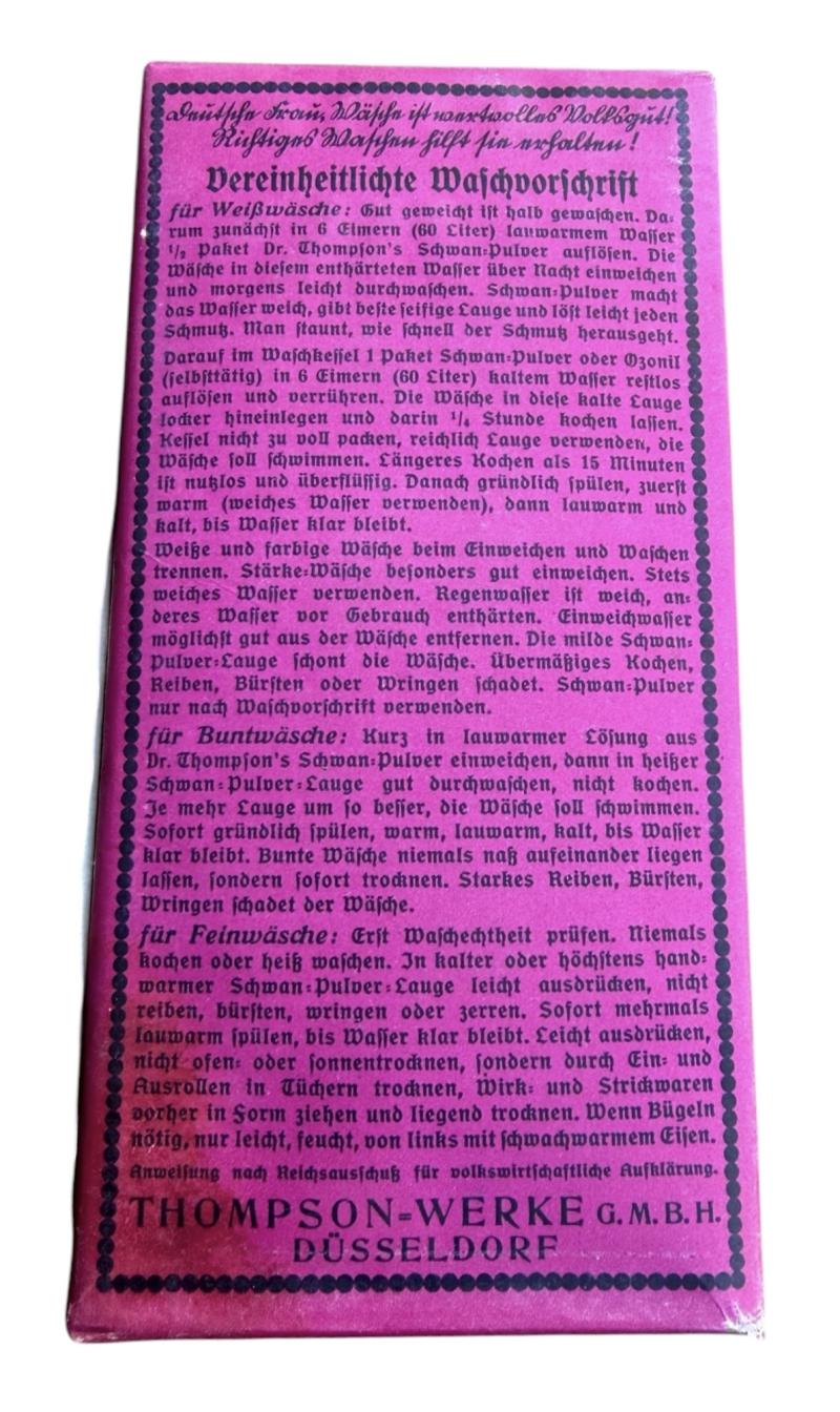 Third Reich era Clothing Soap Swan Pulver Clothing Soap " Swan Pulver" made by "Dr.Tompson's" package with content! In very good condition, great for display!