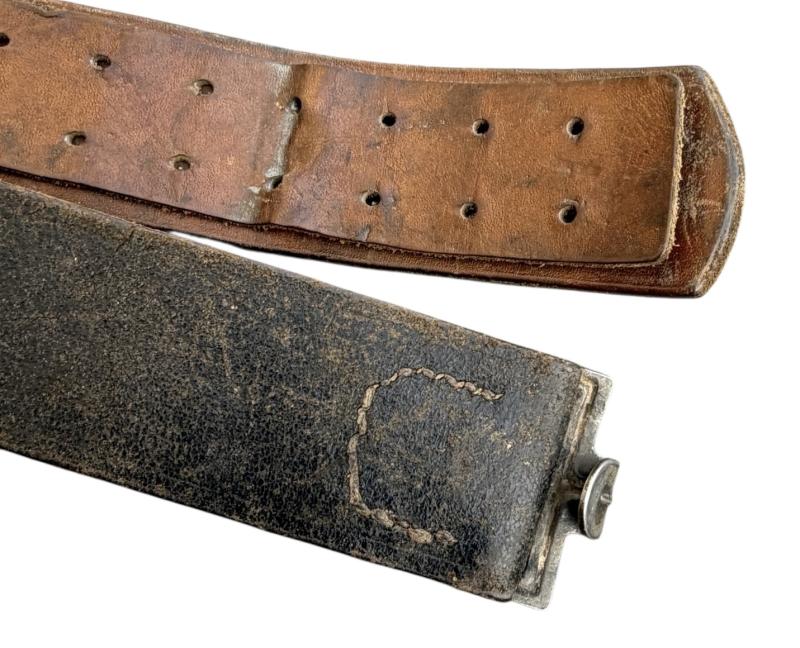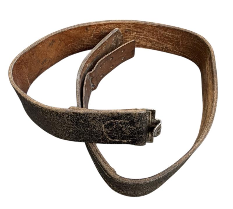 Wehrmacht Combat Belt Nice used leather Wehrmacht combat belt with steel buckle catch in size “90”cm Leather in very good and smooth condition. Great to complete Wehrmacht combat gear!