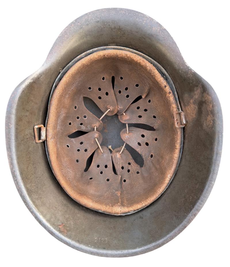 The helmet comes with its original leather helmet strap. Overal a used but nice Luftwaffe M42 SD (Single Decal) helmet in good condition. M42 SD Helmet