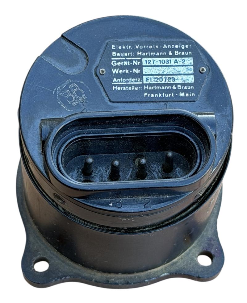Luftwaffe WW2 Airplane Fuel Gauge So-called electric “Vorratsanzeiger” Made by “Hartmann & Baum, Frankfurt am Main” FL Nr. 20723. In used but good condition. Great for a Luftwaffe display!