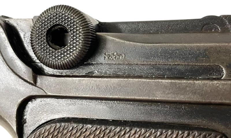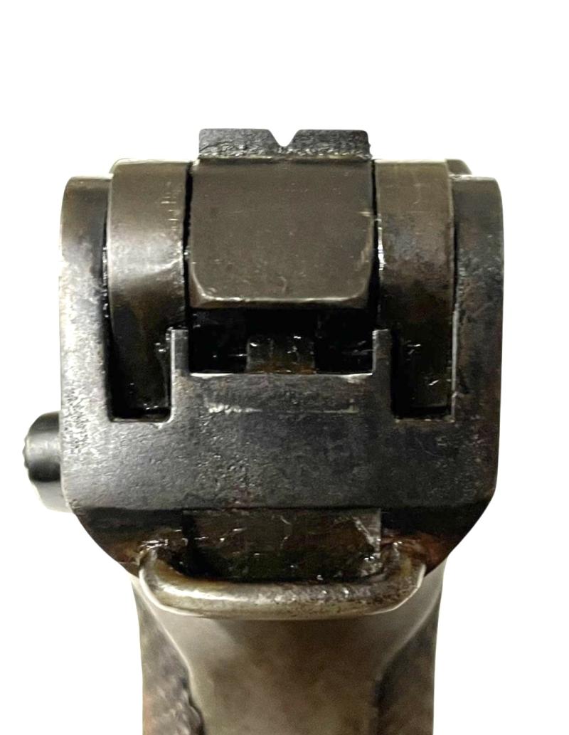 Maker marked “Deutsche Waffen und Munitions Fabriken (DWM)” serial number “3440” Cal. 9mm “Parabellum” and “Waffen Ambt. marked.