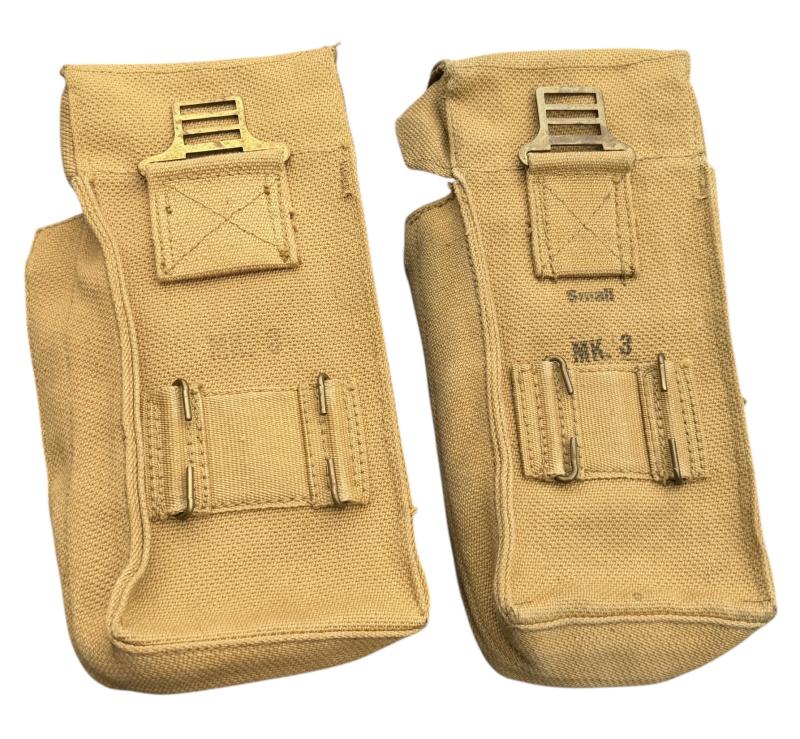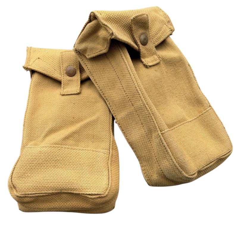 Canadian WW2 Basic Ammo Pouches Near mint pair of Canadian WW2 basic ammo pouches. Both maker marked and “1943” and Canadian “Broad Arrow” stamp. Overal fantastic pair in near mint condition.