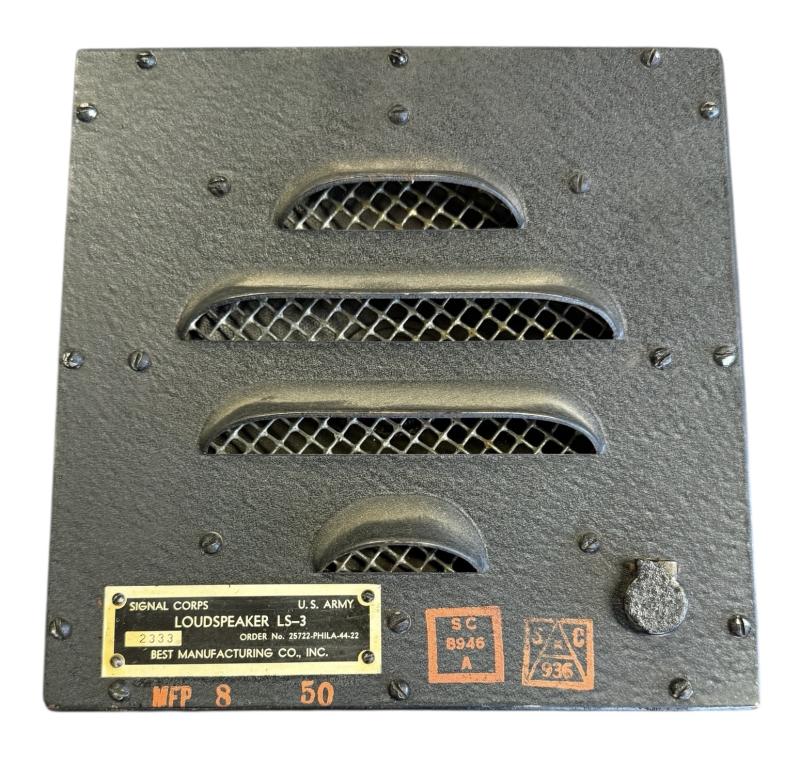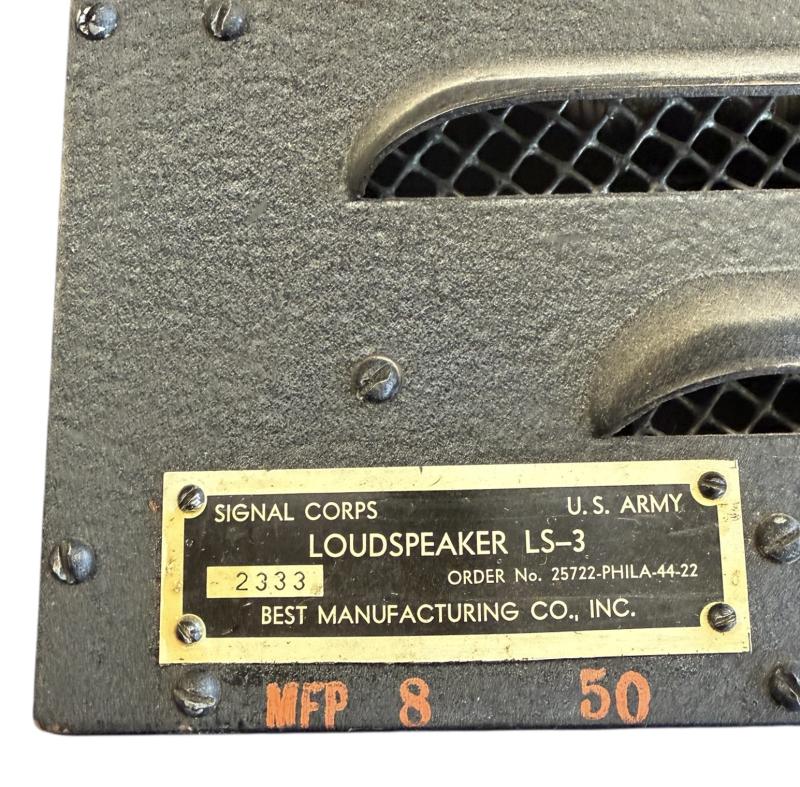 US WW2 Signal Corp Loudspeaker LS-3 Very nice full metal made US WW2 “Signal Corps” loudspeaker. Made by “Best Manufacturing Co. Inc.” In used but very good condition. Great in Signals display!