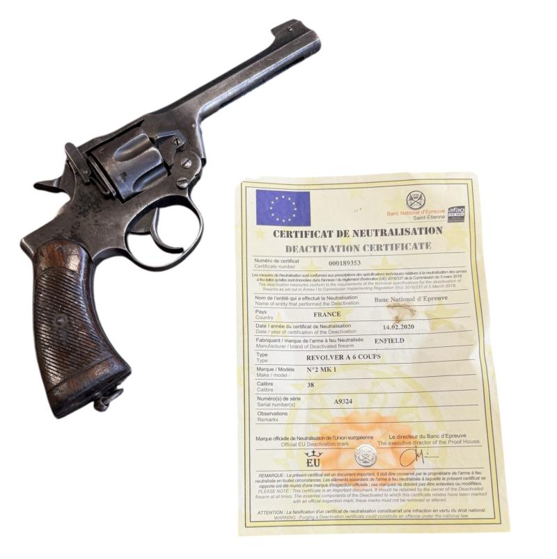 De-activated according EU Law) sold to people over years !! The EU regulation 2015/2403 came about as a result of the attacks in Paris. The regulation applies throughout Europe. In all EU countries, weapons must be disarmed in the manner described in the EU regulation. The disarmed weapons then no longer have to be seen as firearms. The weapons must be provided with a certificate from 1 of the controlling authorities from 1 of the EU countries. They must also be marked by stamped stamps showing the deactivation. From our private collection.